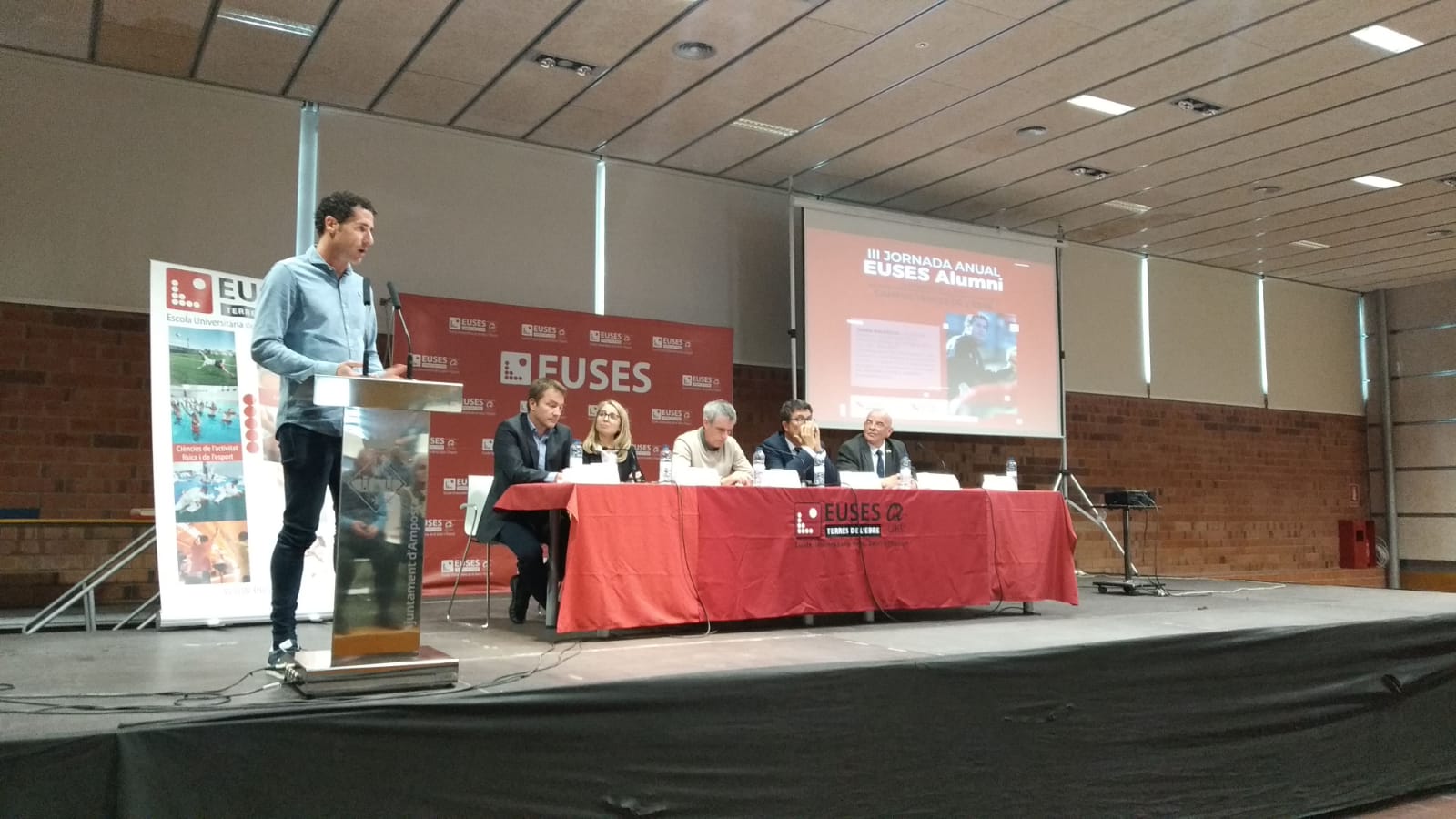 La directora d’EUSES Alumni, Sílvia Roche va encetar la jornada amb una detallada explicació de l’associació que ella dirigeix i que ha esdevingut com una eina de gran utilitat per als exalumnes, ja que disposen d’una potent borsa de treball (més de 1.000 ofertes en els últims anys) i significatius descomptes en l’amplia relació de cursos de postgrau i de formació continuada que ofereix l’Escola Universitària de la Salut i l’Esport. Alumni ha arribat gairebé als 900 associats (onze nacionalitats) i porta acumulats més de 400 voluntariats, una cinquantena dels quals de caràcter solidari. També té signats diversos convenis amb centres col·laboradors i de pràctiques.