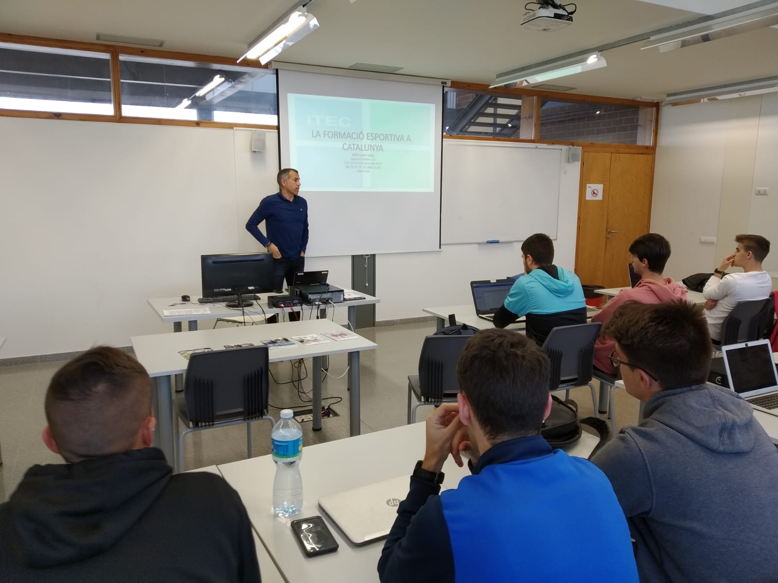 Els estudiants de 2n curs del Grau en Ciències de l’Activitat Física i l’Esport han assistit a una xerrada a càrrec de Max Grau, cap d’estudis de cicles de l’Institut de Tecnificació d’Amposta. Max Grau ha dirigit una sessió informativa sobre la formació professional en l’àmbit de l’activitat física i l’esport que ha estat emmarcada dins l’assignatura de Programació dels ensenyaments en el sistema educatiu que imparteix el professor i cap d’estudis del Grau en CAFE, Pau Cecília.