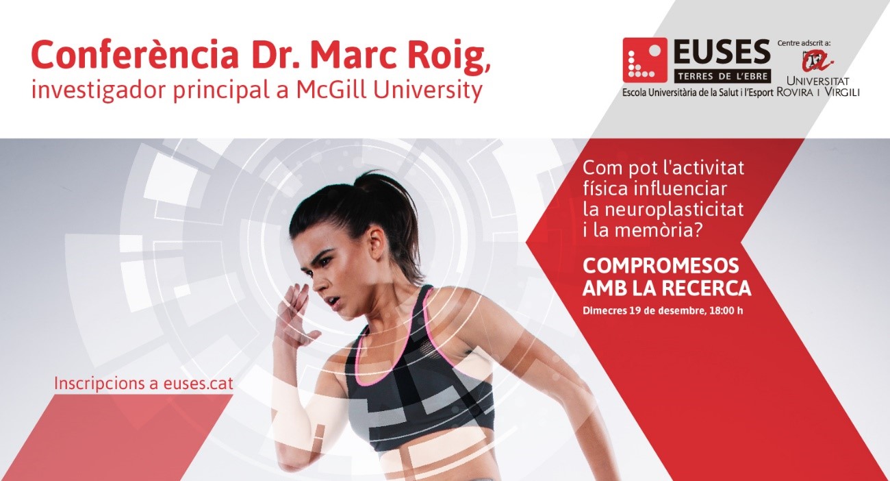 El proper dimecres 19 de desembre, EUSES organitza una sessió formativa impartida per Marc Roig, investigador principal a la prestigiosa McGill University de Montreal, al Canadà. La jornada tractarà sobre com l’activitat física influencia la neuroplasticitat i la memòria.