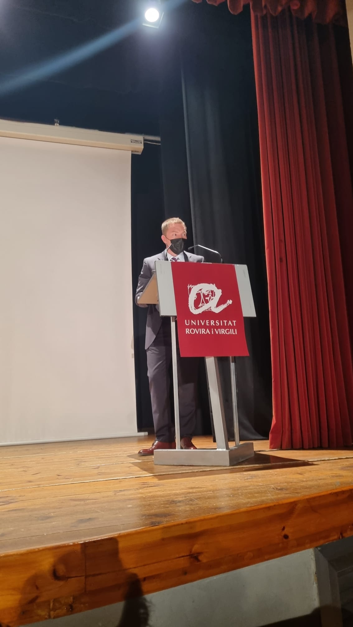 Els 10 anys de l’EUSES a les Terres de l’Ebre també han estat reconeguts durant aquest acte institucional. Precisament, Maria José Figueras ha fet entrega de la distinció de la Universitat Rovira i Virgili a Xavier Nadal, director d’EUSES Terres de l’Ebre; mentre que Meritxell Roigé també ha fet esment del treball d’EUSES TE en el desenvolupament del coneixement a nivell territorial. Per la seva part, el director de l’Escola Universitària de la Salut i l’Esport, Xavier Nadal, ha fet èmfasi en l’estreta colaboracio de l’EUSES com a centre adscrit a la URV i a les diferents sinergies generades amb els ajuntaments de Tortosa i d’Amposta a l’hora de desenvolupar el projecte a les Terres de l’Ebre. A banda de rebre reconeixement públic per la feina feta, Xavier Nadal ha estat obsequiat amb una litografia commemorativa.