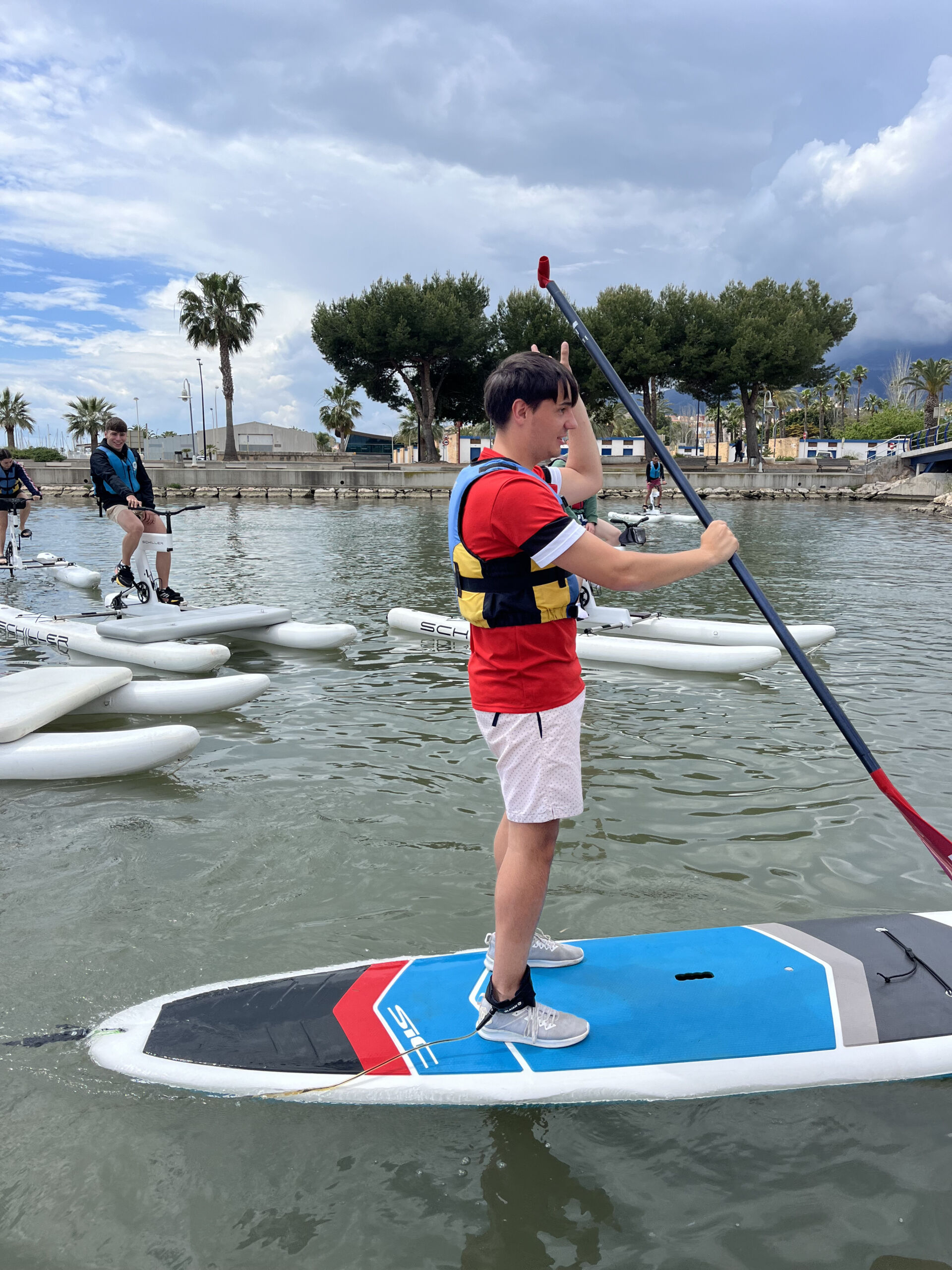 L’alumnat de tercer curs del Grau en Ciències de l’Activitat Física i de l’Esport ha viscut recentment una experiència activa i formativa a través de tres activitats aquàtiques de caràcter recreatiu i esportiu: kayak, bici de mar i paddle surf. Més enllà de la pràctica, han conegut el funcionament d’un centre d’activitats nàutiques com MESMAR, analitzant aspectes com la seva estructura, l’impacte econòmic, l’oferta de serveis i el seu vincle amb el territori i la sostenibilitat. La sortida s’ha emmarcat dins l’assignatura d’Activitat Física en la Natura que imparteix el professor Josep Carles Peris.