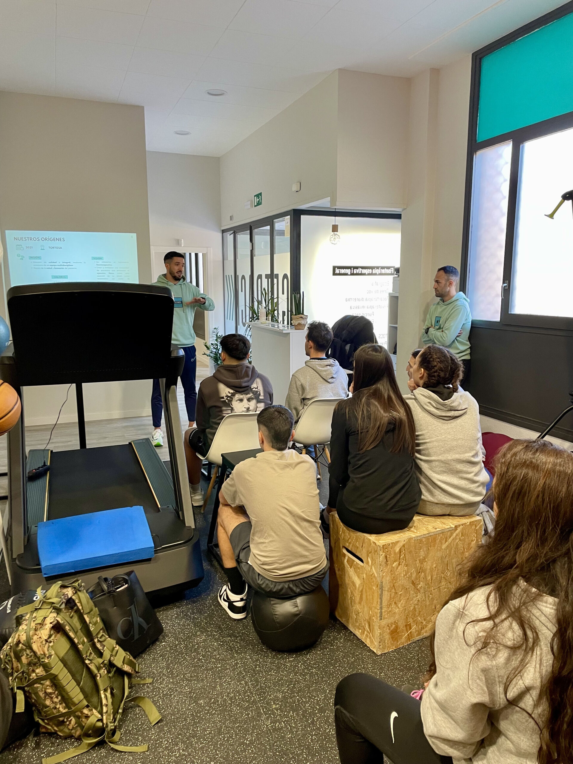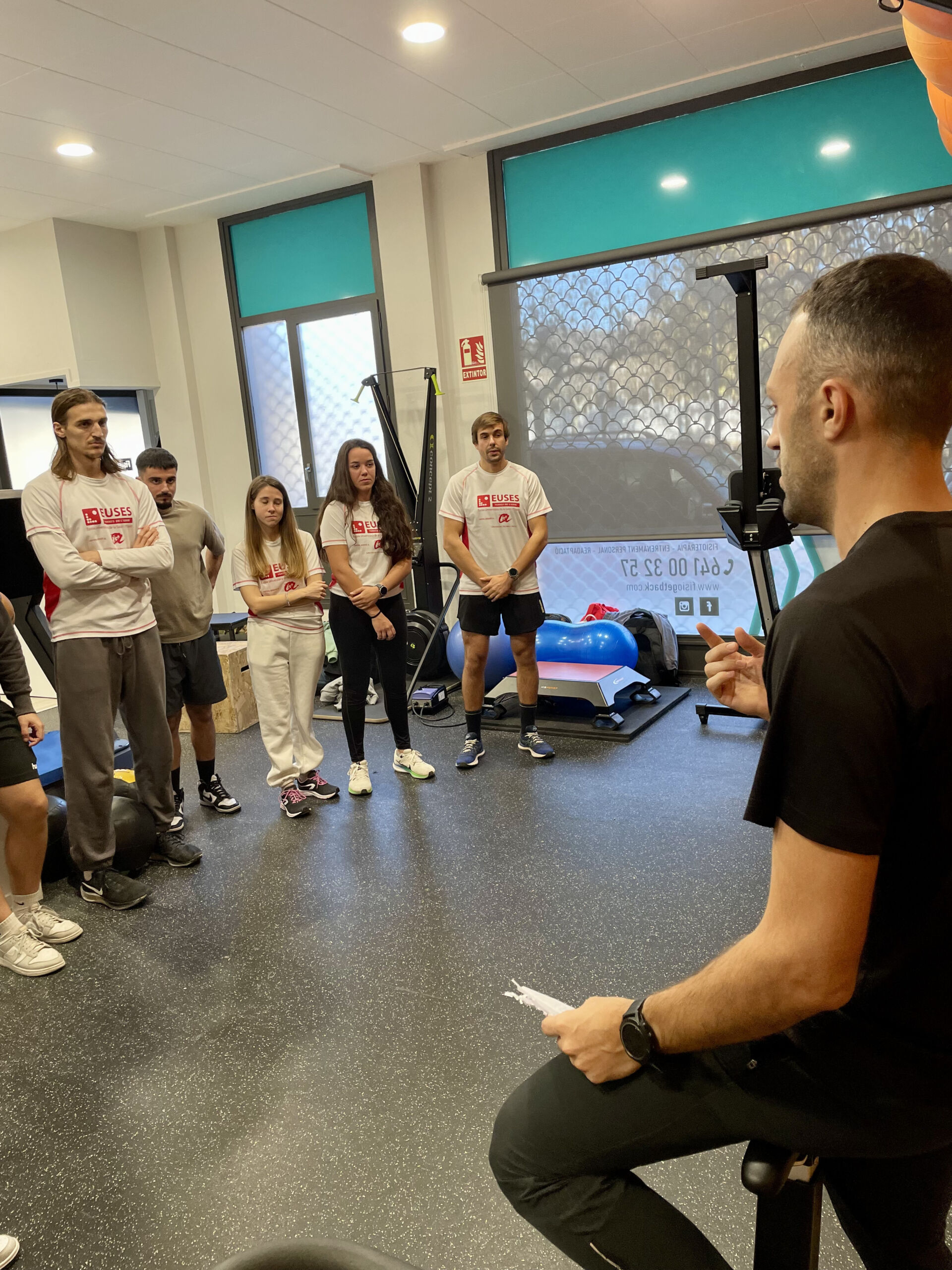 Els alumnes de 3r de Fisioteràpia, dins l’optativa Fisioteràpia de l’Esport 1, han realitzat una pràctica introductòria en el marc de la Readaptació Esportiva al centre Fisio Getback de Tortosa. En la primera part de la sessió, l’encarregat del centre, Miquel, els ha fet una visita completa a les instal·lacions, mostrant-los totes les zones del centre i explicant el tipus de material utilitzat en les diferents àrees, especialment aquelles més relacionades amb la fisioteràpia. A través d’aquesta visita, els alumnes han pogut conèixer de primera mà com s’organitza el centre, quins professionals hi treballen i com es gestionen les sinergies entre fisioterapeutes i preparadors físics.