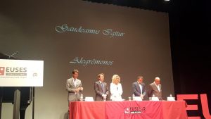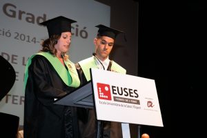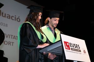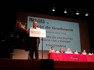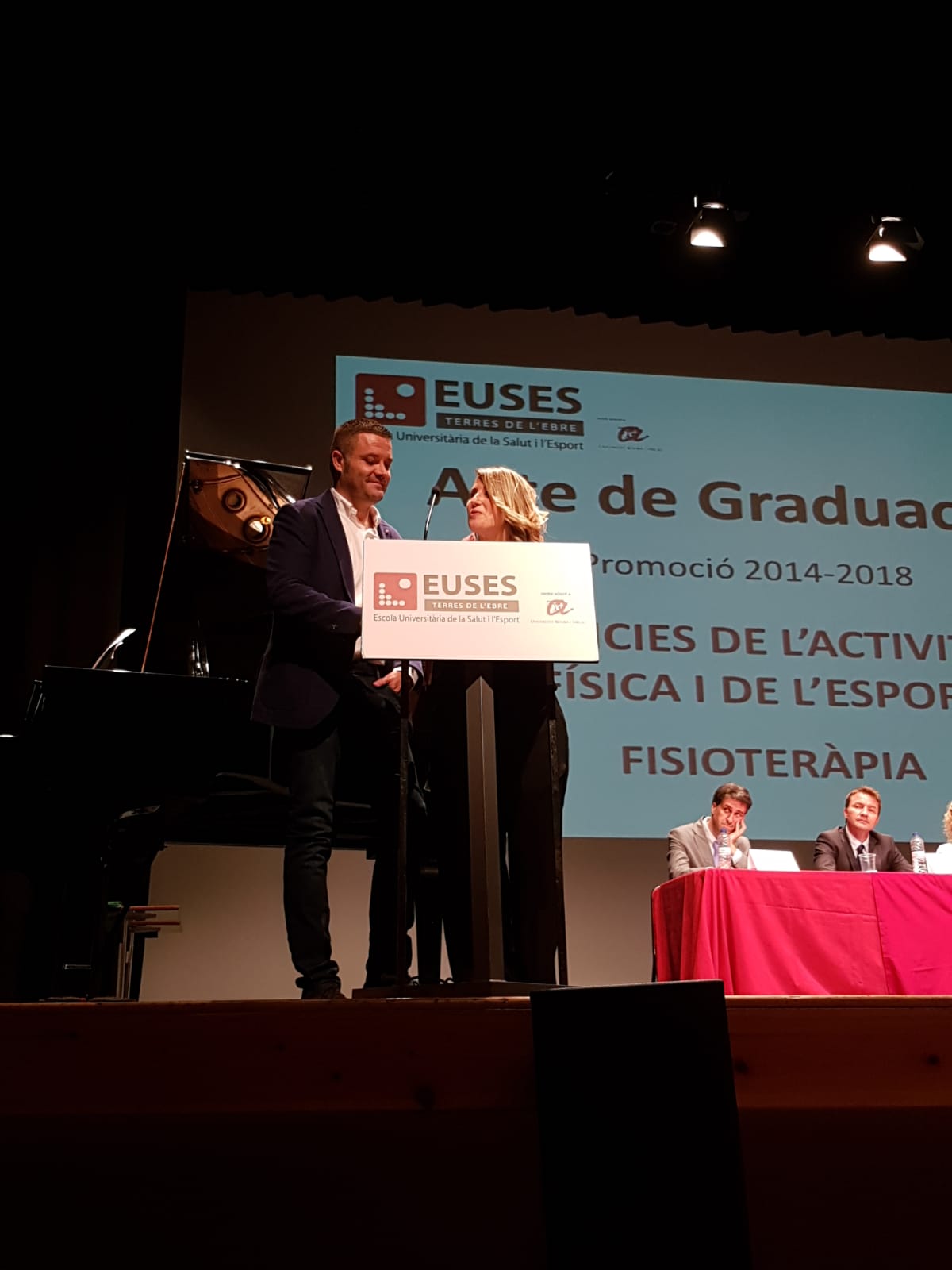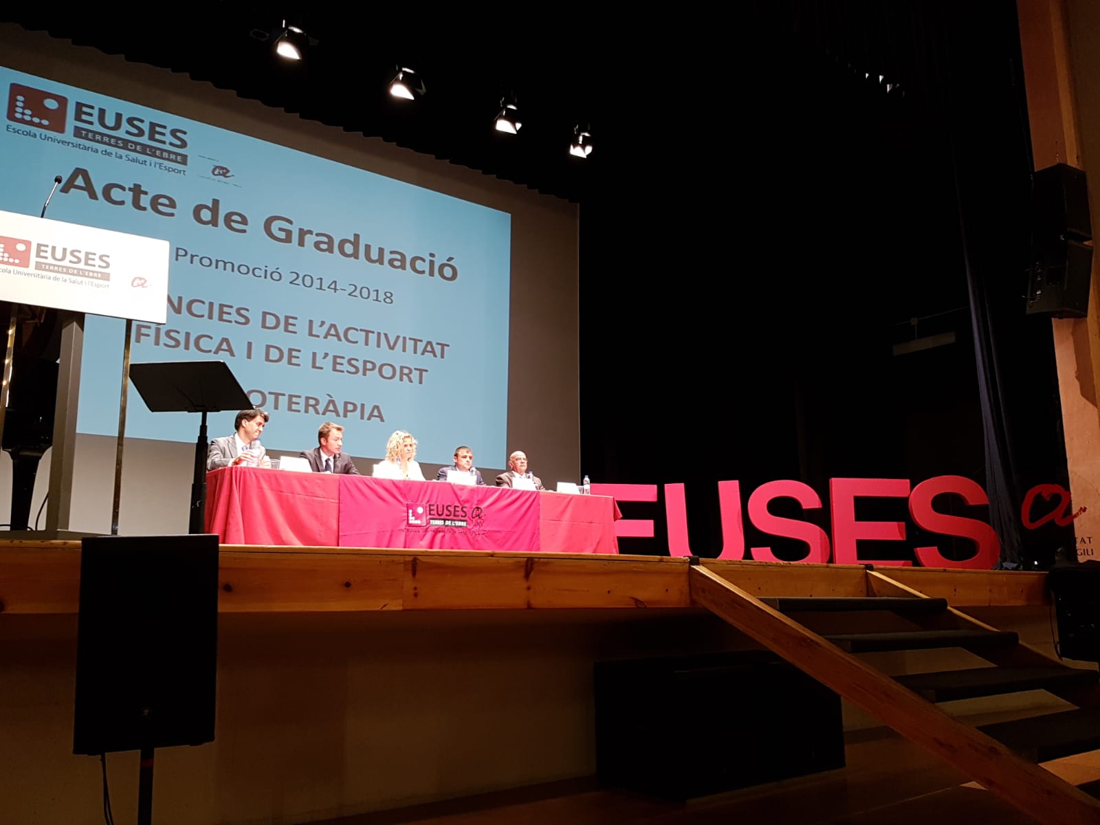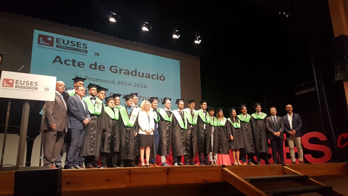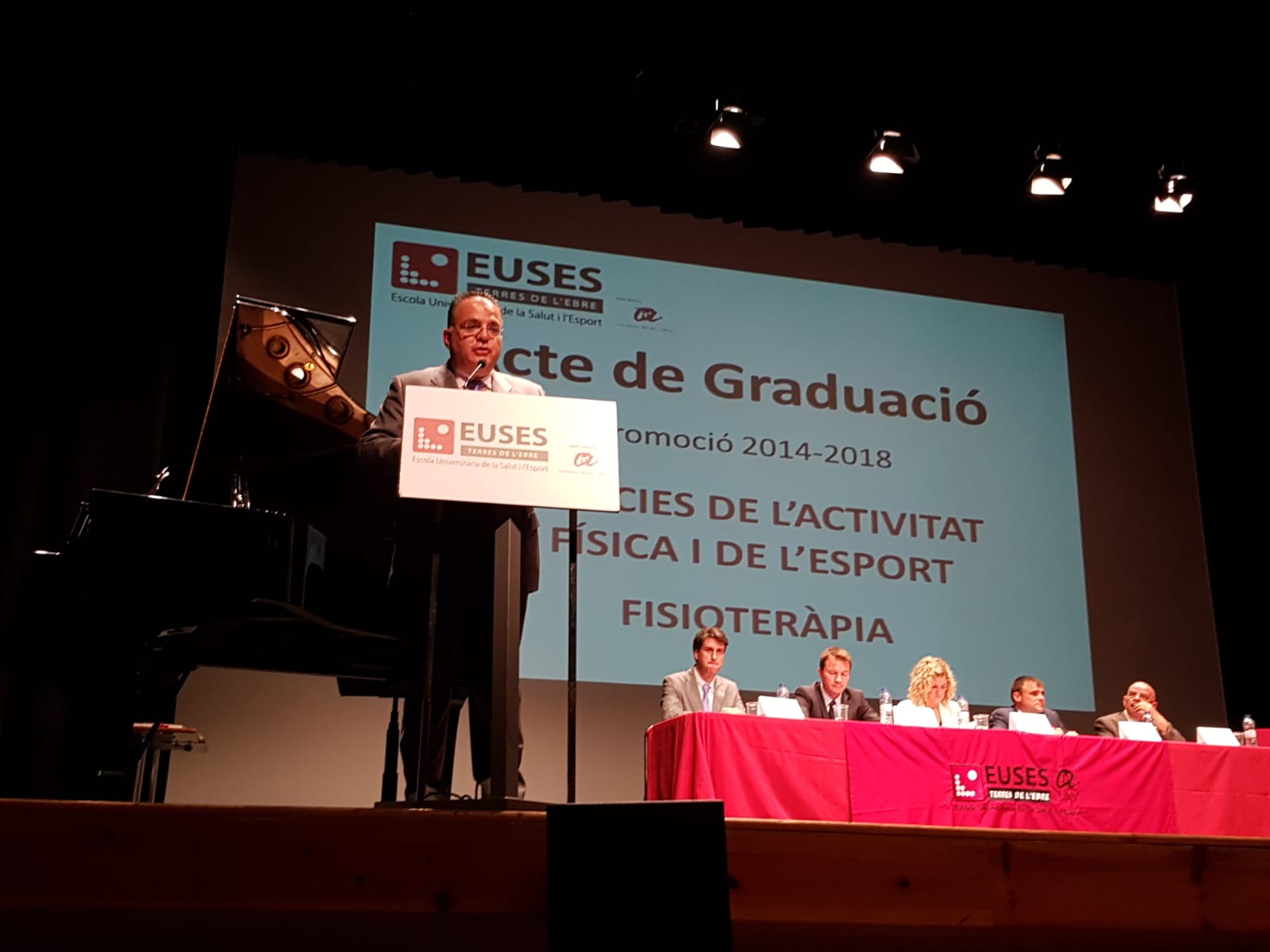 El Teatre Auditori Felip Pedrell de Tortosa va ser l’escenari de l’acte de graduació de la promoció 2014/18 d’EUSES Terres de l’Ebre, que va representar la sortida al mercat laboral de 33 nous fisioterapeutes i 17 nous graduats en Ciències de l’Activitat Física i l’Esport. La cerimònia va estar presidida per Xavier Nadal (director acadèmic d’EUSES TE i del Grau en CAFE); Jordi Casado (director del grau en Fisioteràpia), Meritxell Roigé (alcaldessa de Tortosa), Marc Fornós (regidor d’esports de l’Ajuntament d’Amposta) i Pere Manuel (president del COPLEFC).