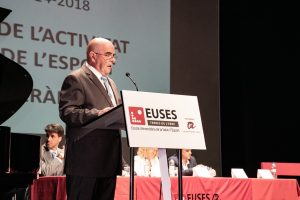 Presentat pel periodista Joaquim Rambla i amb peces musicals a càrrec del duo d’oboè i piano format per Jordi Bonilla i Paula Martí, els primers parlaments van anar a càrrec de Xavier Nadal, Jordi Casado i Pere Manuel Gutiérrez, i van tenir com a denominador comú la felicitació als nous graduats per l’esforç durant quatre anys que els ha dut a assolir l’objectiu, així com alguns consells per a la nova etapa que iniciaran a partir d’ara. Un dels punts àlgids de l’acte va ser l’entrega dels diplomes i les bandes als nous graduats, que van pujar a l’escenari de dos en dos.
