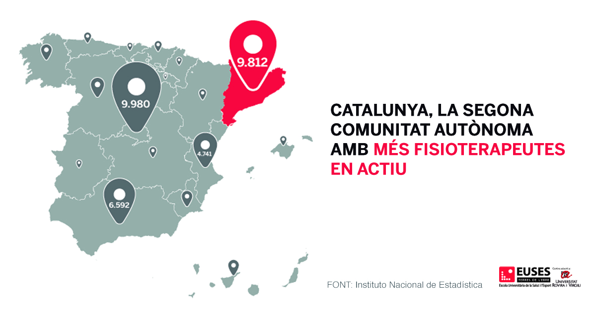 Segons dades del ‘Instituto Nacional de Estadística’, Catalunya compta amb 9.812 fisioterapeutes, un nombre només superat per Madrid, que en té 9.980. Catalunya és una de les potències del sector en aquest àmbit i on hi ha més professionals exercint, és per això que és una excel·lent regió per estudiar fisioteràpia.