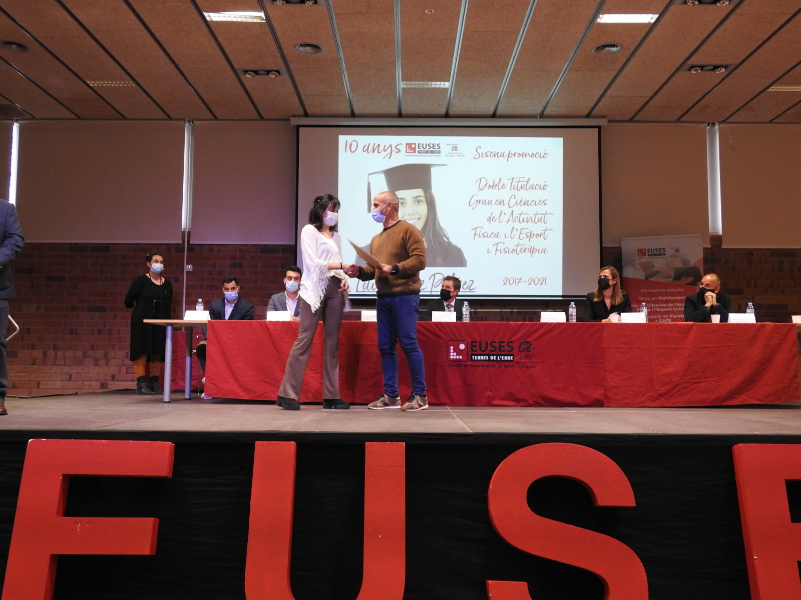 Durante la IV jornada se ha aprovechado también para hacer entrega de los premios a los mejores expedientes de las tres últimas promociones, teniendo en cuenta que la Jornada Anual se aplazó los años 2020 y 2021 a causa de la Covid-19. En CAFyD, los mejores expedientes han recaído sobre Kevin Moreno (4ª promoción), Victor Vila (5ª) y Eric Alarcon (6ª); mientras que en Fisioterapia han sido para Adrián Bel (4ª promoción), Lydia Mestre (5ª) y Ainoa Aixendri (6ª). También se ha hecho entrega al mejor expediente de Doble Titulación (CAFE+Fisioterapia) que ha recaído sobre Laia Díaz.