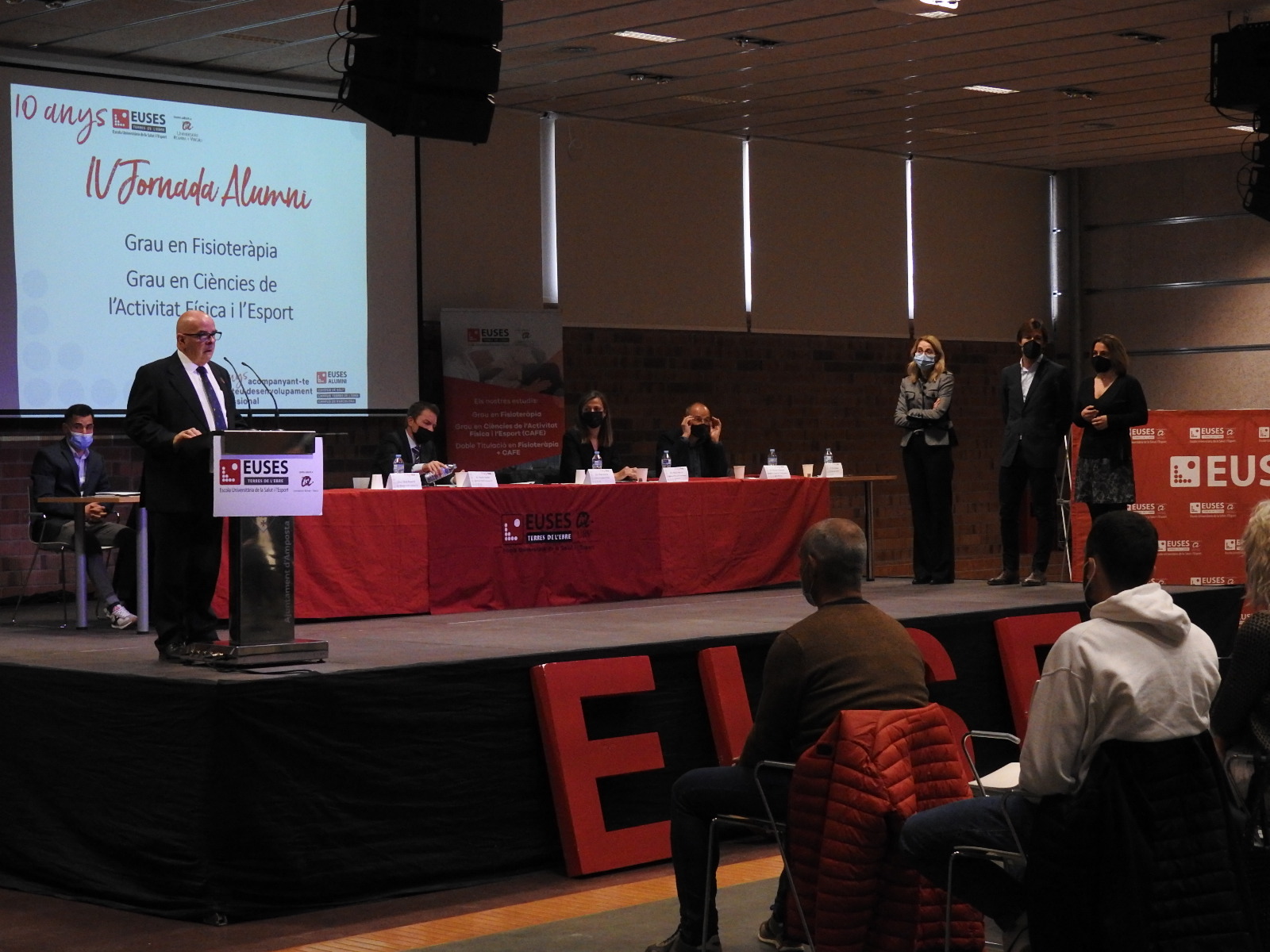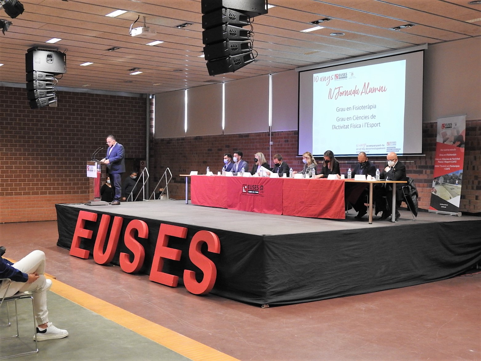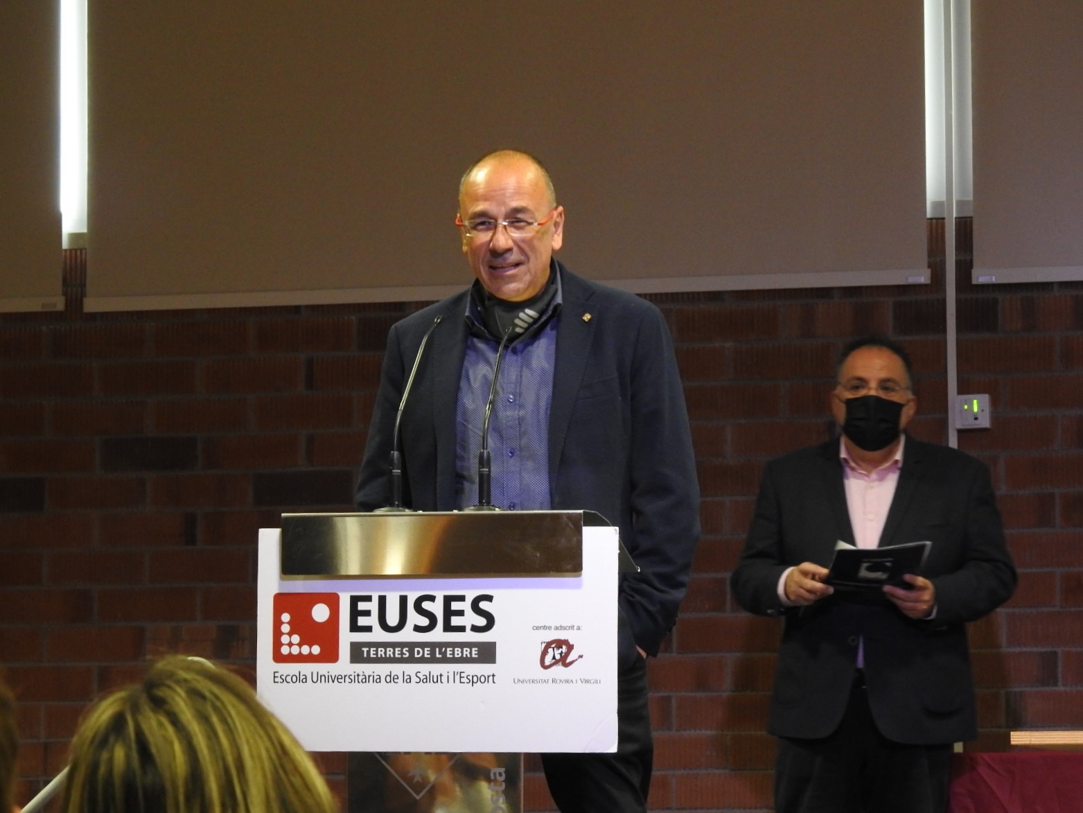 La jornada ha estado presidida por Sílvia Roche (directora de EUSES Alumni); que ha integrado la mesa presidencial junto con Xavier Nadal (director del Campus de EUSES TE), Nuria Marco (Regidora de Educación del Ayuntamiento de Amposta), la Dra. Sílvia Reverté (Subdirectora del Campus URV de las Terres de l’Ebre); el Dr. Ramon Aiguadé (Decano del Colegio de Fisioterapeutas de Catalunya); Pere Manuel (presidente del COPLEFC) y los ponentes Jordi Martín i Jordi Castellano. También han asistido a la jornada Iris Castell (Regidora de Promoción y Turismo Deportivo del Ayuntamiento de Amposta, que también es alumna de 4º curso de CAFyD) y Joan Lluís Barberà (Jefe de la Representación de los SSTT Deportes a las Terres de l’Ebre). El acto ha sido presentado y moderado por el periodista Ximo Rambla.
