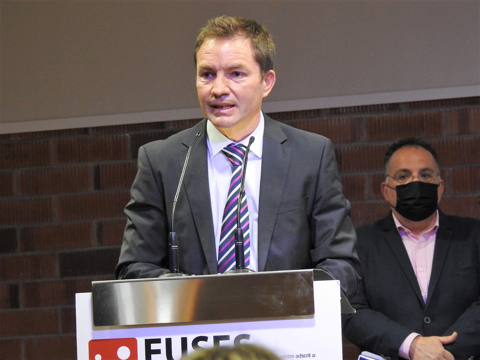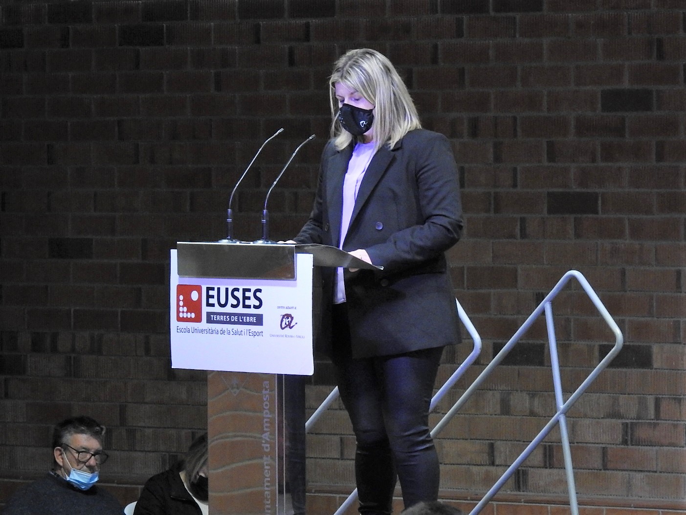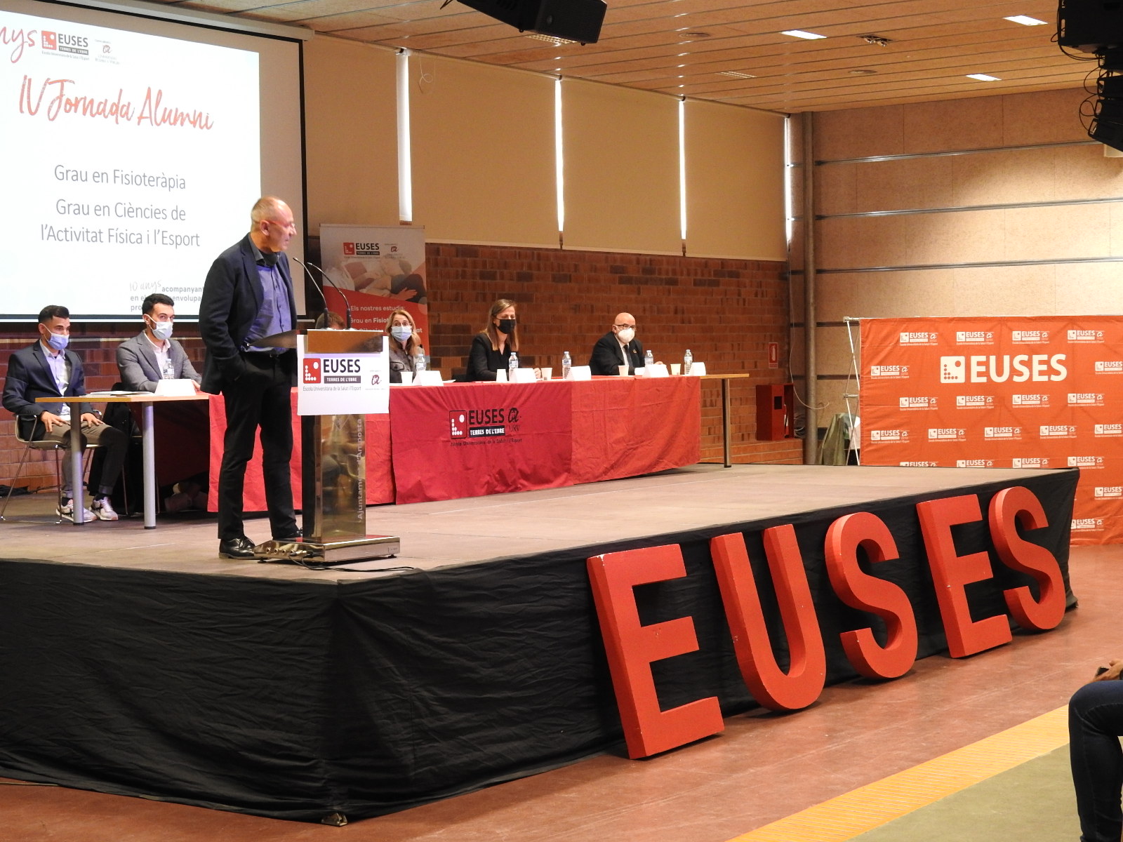 La jornada ha estado presidida por Sílvia Roche (directora de EUSES Alumni); que ha integrado la mesa presidencial junto con Xavier Nadal (director del Campus de EUSES TE), Nuria Marco (Regidora de Educación del Ayuntamiento de Amposta), la Dra. Sílvia Reverté (Subdirectora del Campus URV de las Terres de l’Ebre); el Dr. Ramon Aiguadé (Decano del Colegio de Fisioterapeutas de Catalunya); Pere Manuel (presidente del COPLEFC) y los ponentes Jordi Martín i Jordi Castellano. También han asistido a la jornada Iris Castell (Regidora de Promoción y Turismo Deportivo del Ayuntamiento de Amposta, que también es alumna de 4º curso de CAFyD) y Joan Lluís Barberà (Jefe de la Representación de los SSTT Deportes a las Terres de l’Ebre). El acto ha sido presentado y moderado por el periodista Ximo Rambla.