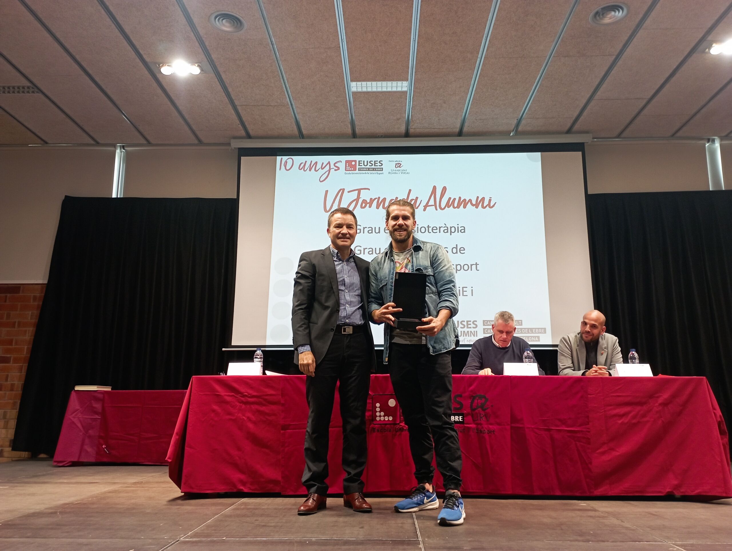 Después de la presentación de la asociación por parte de la Directora de Alumni, Sílvia Roche, y de la introducción del Director de EUSES TE, Xavi Nadal, se ha procedido a la entrega de los reconocimientos a los mejores expedientes académicos. En el Grado en Fisioterapia se ha distinguido a Camilo Durán; en el Grado en CAFyD, a Sergi Guàrdia; ye n la Doble Titulación (CAFyD+Fisioterapia) el premio ha sido para Pol Rodríguez. La entrega de los diplomas y las placas conmemorativas ha ido a cargo de Xavier Nadal, Sílvia Roche, Carla Curto (directora de Fisioterapia), y el Dr Ramon  Aiguadé y Pere Manuel, decano y presidente de los colegios profesionales de Fisioterapia y de CAFyD, respectivamente. El COPLEFC, además, ha obsequiado con un año de colegiación gratuita los premiados de CAFyD y Doble Titulación, así como al Mejor TFG de CAFyD del curso pasado, elaborado por Anna Ferré.