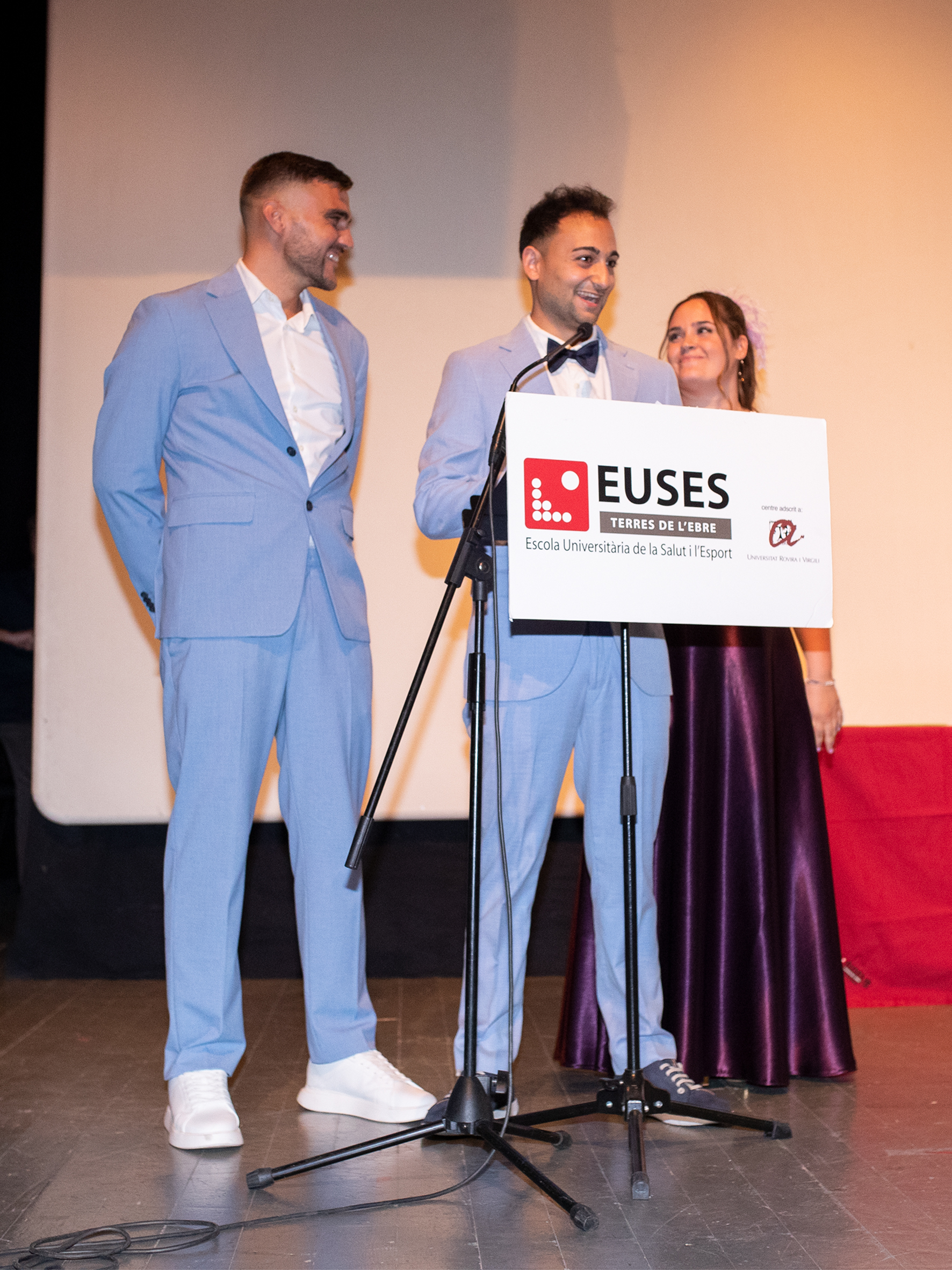 Ya en la recta final, Ximo Rambla ha dado la palabra a Mònica Sales, diputada en el Parlamento de Catalunya y exprofessora de EUSES Terres de l’Ebre; y a Iris Castell, regidora del Ayuntamiento de Amposta y graduada por EUSES TE. Las dos, por su vinculación directa con la Escola Universitària de la Salut i l’Esport, han puesto en valor los cuatro años de dedicación y esfuerzo de los nuevos graduados y han elogiado la calidad docente del Campus de Terres de l’Ebre en Amposta y Tortosa. En el acto también han asistido otras autoridades como Yolanda Sánchez (vicedecana del Colegio de Fisioterapeutas de Catalunya), Nuria Marco i Marc Fornós (regidores del ayuntamiento de Amposta) y Max Grau (miembro del Pla Català de l’Esport en l’Escola). La cantada del himno universitario, Gaudeamus Igitur, ha cerrado oficialmente la ceremonia a pesar de que posteriormente se han proyectado varios videos elaborados por los ya graduados con fotografías que han recordado sus cuatro años en el centro.
