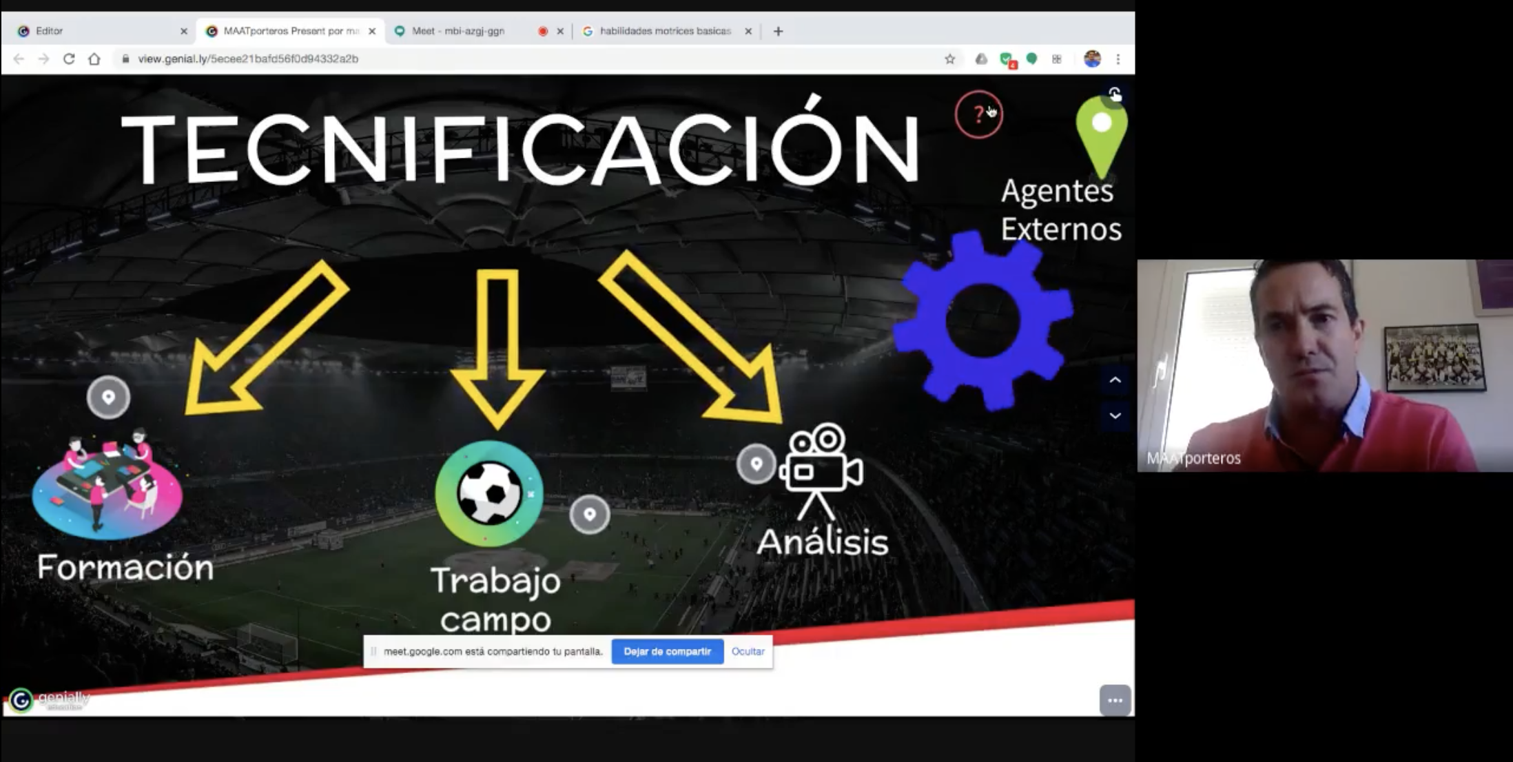 Miguel Ángel Álvarez y Manuel Oliva, entrenadores de porteros del Terrassa y del Nàstic de Tarragona respectivamente, han realizado una charla por videoconferencia dirigida a los alumnos de 3º curso del Grado en Ciencias de la Actividad Física y del Deporte enmarcada en la asignatura de Ampliación de los Deportes-Fútbol II que imparte el profesor Jordi Abella. Álvarez y Oliva, especialistas de reconocida trayectoria por lo que hace referencia al entrenamiento de porteros, han explicado al alumnado como se desarrolla en un club y en una escuela o en el fútbol base una preparación que es muy específica en comparación a la del resto de jugadores de campo en un equipo de fútbol. La exposición, muy ilustrativa, ha dado paso posteriormente a un turno activo de preguntas y dudas por parte de los estudiantes que han sido contestadas por ambos técnicos.