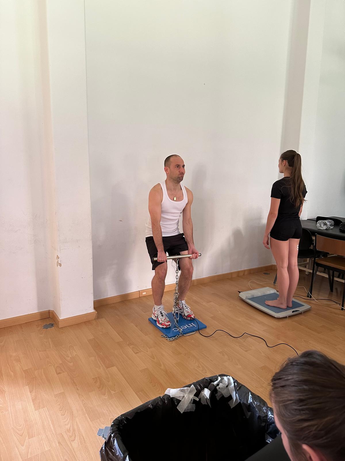 El estudio desarrollado en esta recogida de datos versa en la valoración de si el calentamiento FIFA 11+ es una buena herramienta para preparar para la competición la parte más distal de las piernas, y más concretamente, de los tobillos. Para realizar esta valoración se utilizaron una plataforma de presiones, un Pull Test isométrico con galga extensiométrica, electromiografía de superficie y un Myoton para medir el tono muscular, entre otros dispositivos. La recogida de datos se pudo hacer gracias a la colaboración de algunos alumnos de tercer curso del Grado en Fisioterapia, que de manera voluntaria se sometieron a las pruebas necesarias. Además, también los sirvió como puerta de acceso a la investigación, ya que nunca antes habían participado en un estudio de estas características, y valoraron muy positivamente la experiencia.