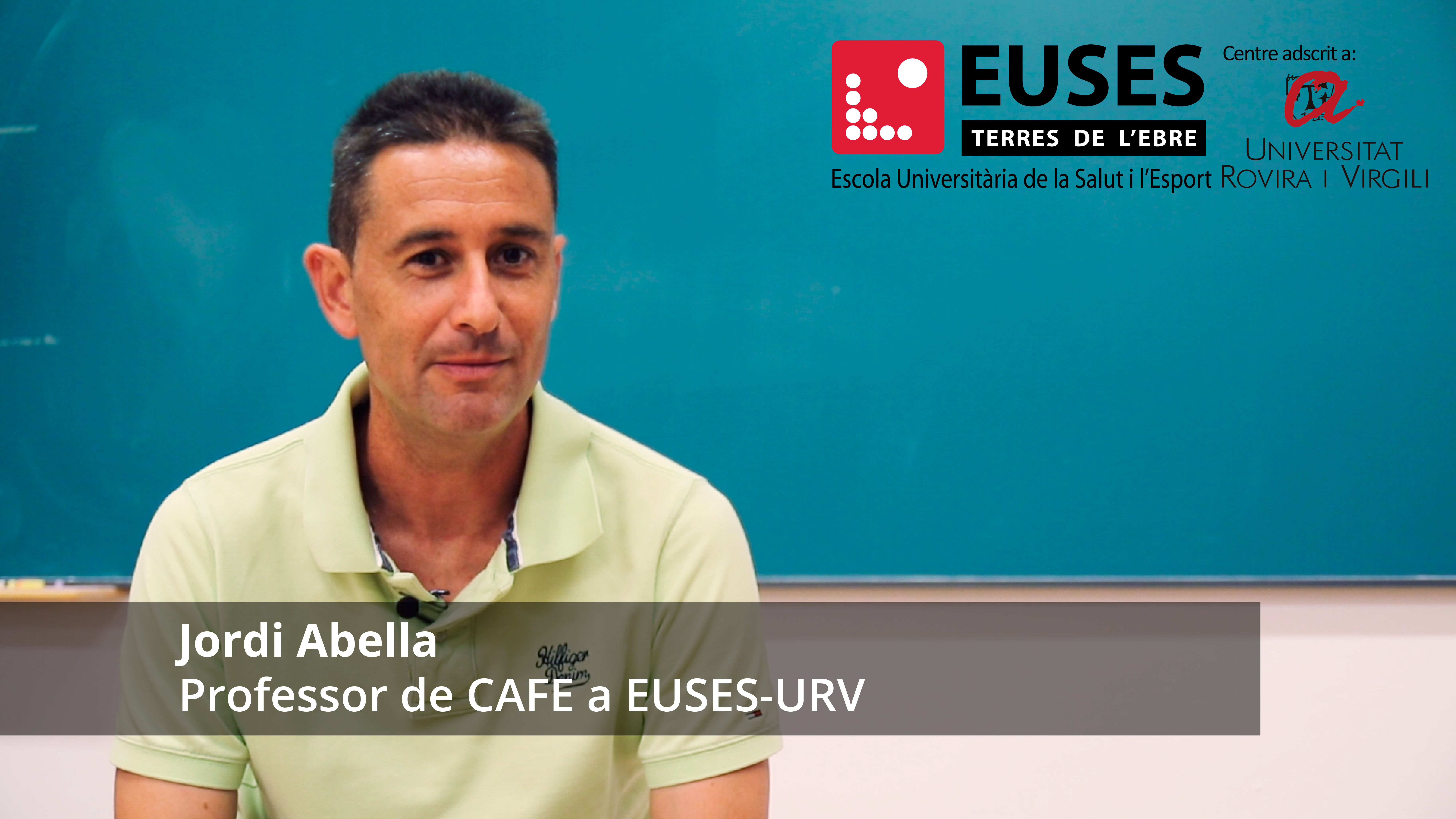 El professor Jordi Abella s’incorpora aquest any a l’equip docent d’EUSES Terres de l’Ebre, és el seu primer any com a docent en aquest centre. Prèviament, havia estat professor d’assignatures d’Educació Física a l’ESO i a Batxillerat. Posteriorment, va haver de deixar l’àmbit de l’educació per dedicar-se professionalment al món del futbol, fins a la darrera temporada que va haver d’abandonar aquest esport per motius familiars. El seu següent pas ha estat introduir-se en el camp de la docència universitària; un àmbit que li agrada perquè considera que és molt atractiu; doncs, propicia que tinguis inquietud per aprendre, ensenyar i estar al dia de les darreres novetats.
