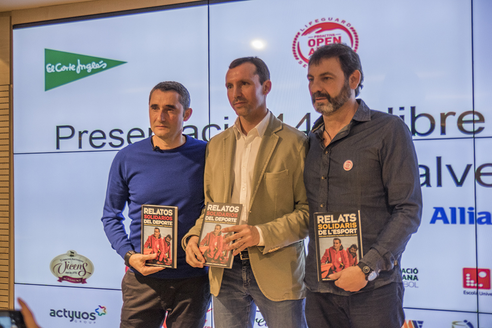 El director acadèmic d’EUSES, Rafel Magrinyà, va assistir a la presentació de llibre, on va coincidir amb Ernesto Valverde i Òscar Camps. “És una gran notícia poder col·laborar amb un projecte solidari dels periodistes esportius de Catalunya i poder fer aquesta aportació a Proactiva Open Arms” va explicar Rafel Magrinyà. “Per nosaltres és un orgull i una oportunitat molt bona”.