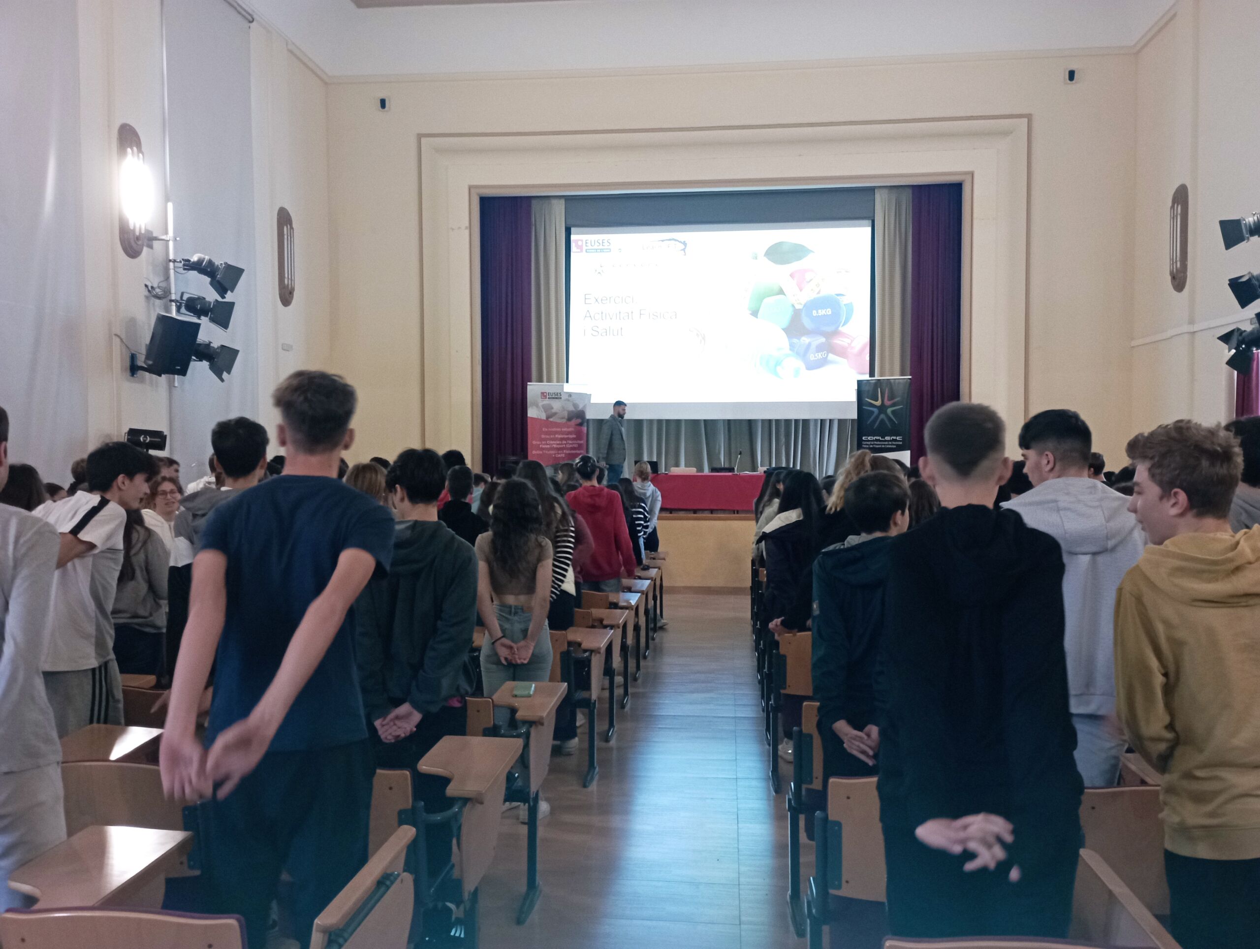 Por otro lado, y para los alumnos de ESO, se han impartido dos seminarios relacionados con la actividad física y el deporte. Ante más de 160 estudiantes, la graduada CAFyD Alba Encina ha impartido una charla sobre Deporte y Género, mientras que el graduado CAFyD y actual profesor del Campus de Terres de l’Ebre Dídac Carles ha centrado su conferencia en Ejercicio, Actividad Física y Salud. Ambas ponencias han sido muy bien acogidas por la audiencia, con un público que ha estado muy participativo con preguntas y aportaciones.
