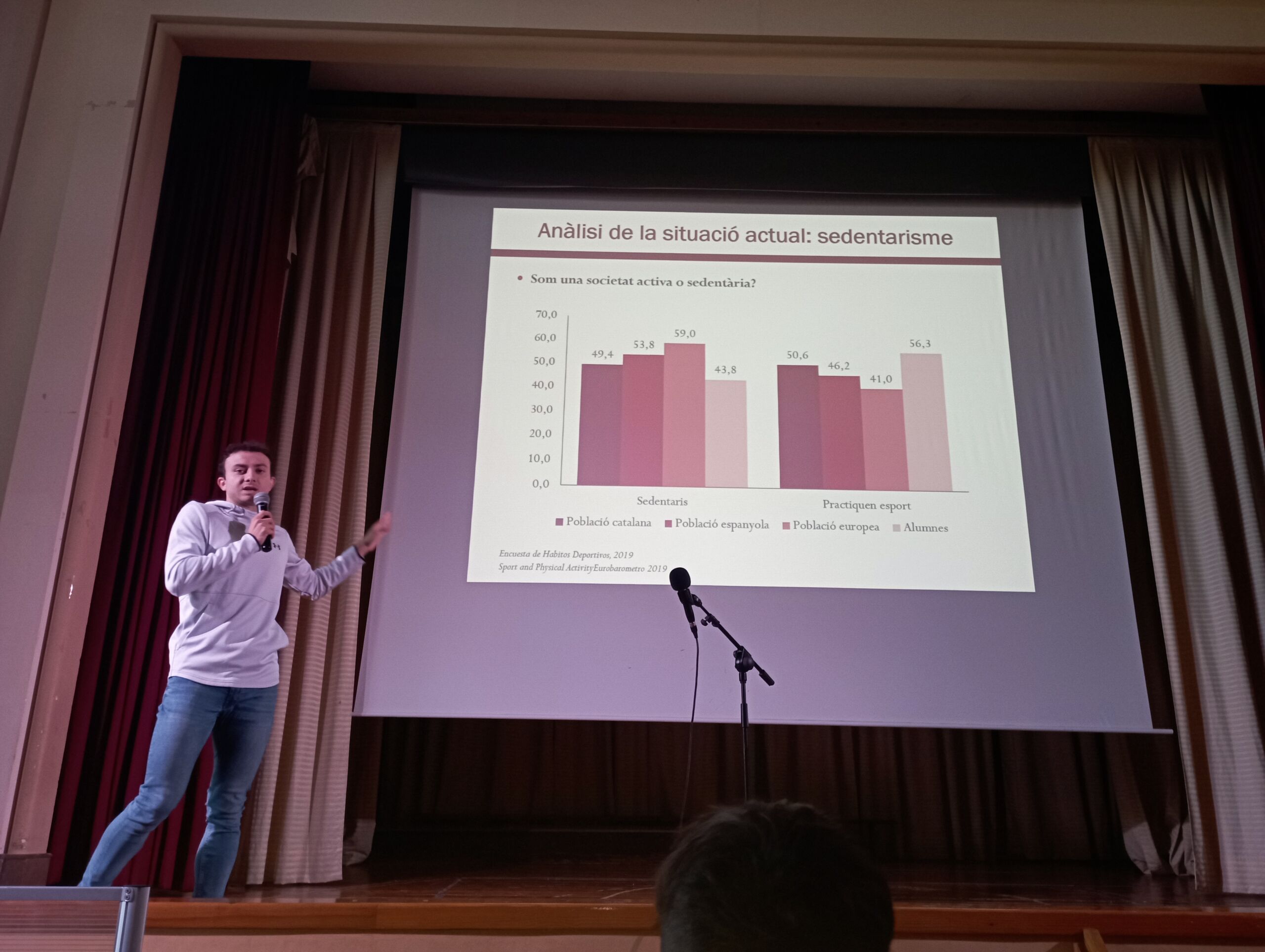 A primera hora de la mañana nuestro graduado en CAFyD Marc Acero se ha encargado de impartir una formación a los alumnos de 3º y 4º de ESO, que llevaba por título «Hábitos deportivos por la mejora de la salud».