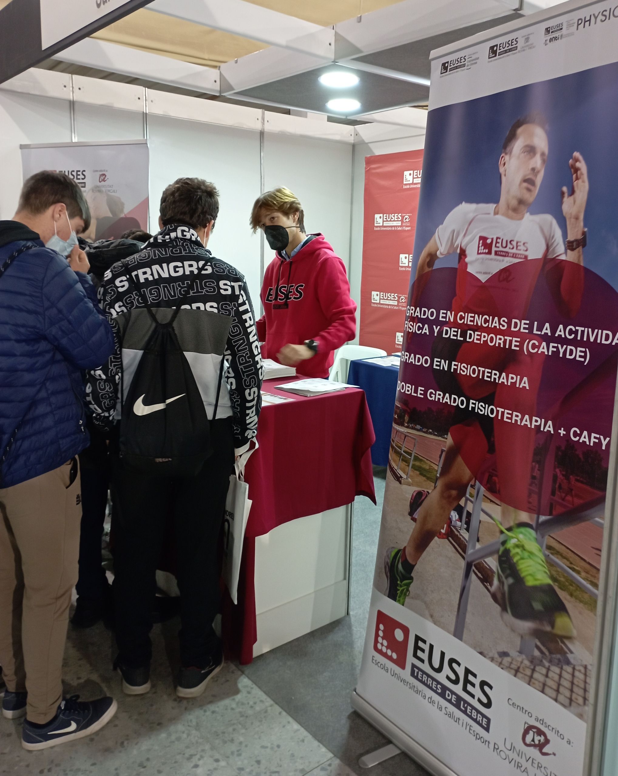 Entre estos, los asistentes han podido visitar el estand de la Escola Universitària de la Salut i l’Esport de las Terres de l’Ebre, donde durante toda la feria muchos se han acercado a conocer la oferta formativa especializada en salud y deporte en el Campus de Terres de l’Ebre (Grado en Fisioterapia, Grado en Ciencias de la Actividad Física y del Deporte y Doble Titulación: CAFyD + Fisioterapia)