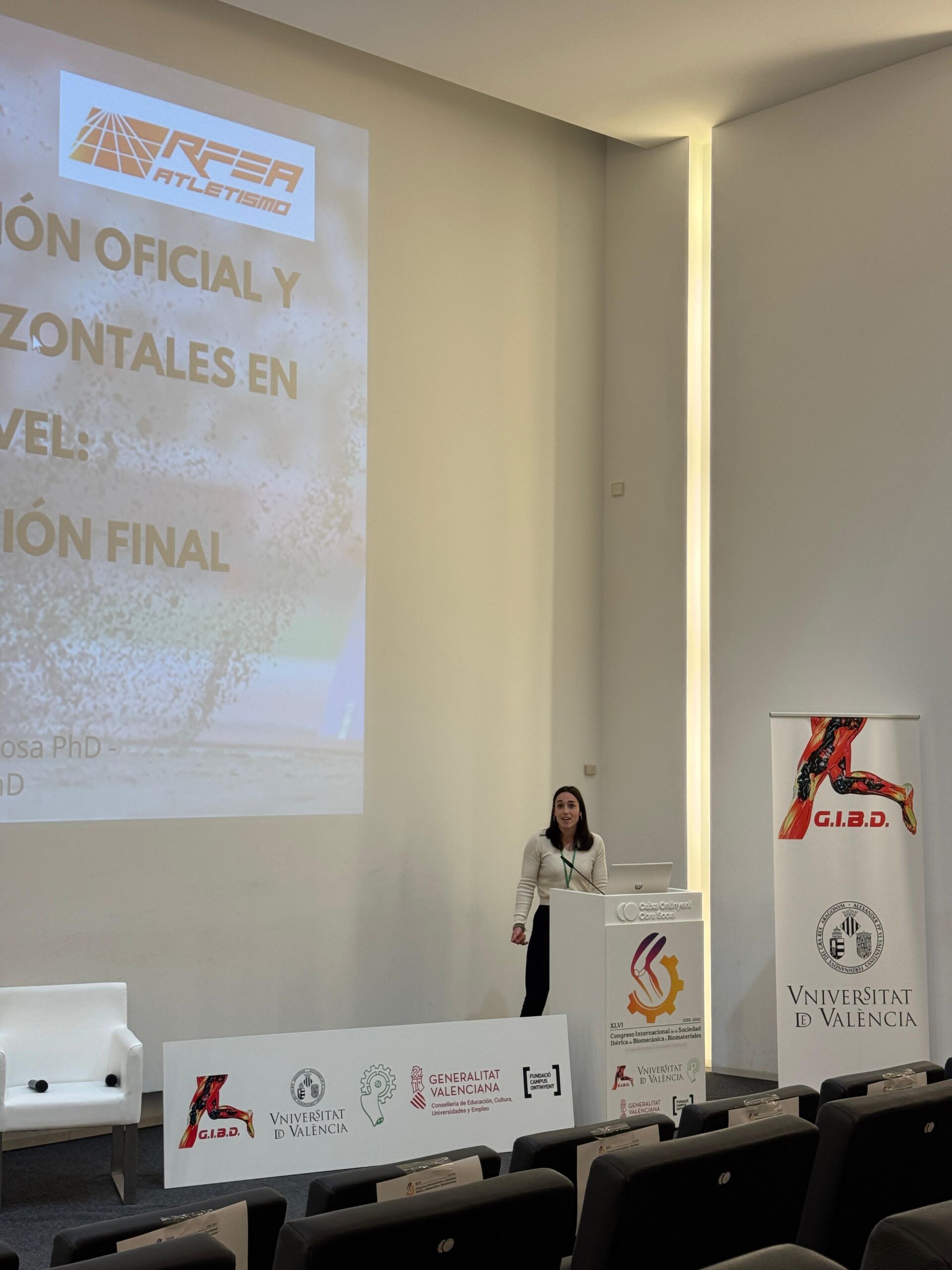 Este martes 3 de diciembre, la reciente graduada en CAFyD por EUSES TE- URV, Laura Gisbert Planas, hizo una comunicación oral dentro del Congreso Internacional de la Sociedad Ibérica de Biomecánica y Biomateriales, que tuvo lugar en Ontinyent (Comunidad Valenciana). Esta comunicación oral explica las posibles diferencias en rendimiento y sobre la clasificación final del hecho de saltar a partir de una tabla de vareo (como marca el reglamento) o a partir de una zona de vareo (a partir de una posible modificación del reglamento que ha lanzado World Athletics) en los saltos horizontales del atletismo. Esta comunicación forma parte de los resultados obtenidos por Laura Gisbert en su trabajo de fin de grado, realizado en el marco de sus prácticas en el Departamento de Biomecánica del CAR de Sant Cugat, con el Dr. Ventura Ferrer. La comunicación ha contado también con la co-autoría de dos profesores de EUSES, el Dr. Gerson Garrosa y el Dr. Pau Cecília. Este nuevo hito de Laura Gisbert se suma al reconocimiento recibido hace dos semanas por parte de EUSES Alumni, como mejor expediente académico de la promoción 2020/2024.