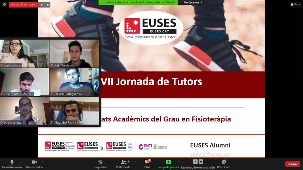 EUSES Alumni, conjuntamente con la asignatura de Prácticum del Grado en Fisioterapia, organizó por séptimo año consecutivo la Jornada de Tutores, que esta vez tuvo formato “on-line” a causa de la pandemia del Còvid 19. La formación, que se realizó a través de la plataforma Zoom, contó con una cuarentena de asistentes entre miembros de Alumni y estudiantes de cuarto curso de los campus de Salt, Bellvitge y Terres de l’Ebre. La charla la impartieron responsables de EUSES Alumni, como la directora Sílvia Roche i Prudence Morgan-Wood; y la profesora y coordinadora de Prácticum, Nuria Puigtió. Durante la jornada se expusieron temas como los detalles necesarios para poder formar parte del grupo de tutores, el protocolo de tratamiento unificado y las funciones que tienen que ejercer los tutores en los voluntariados así como otros aspectos más generales relacionados con Alumni.