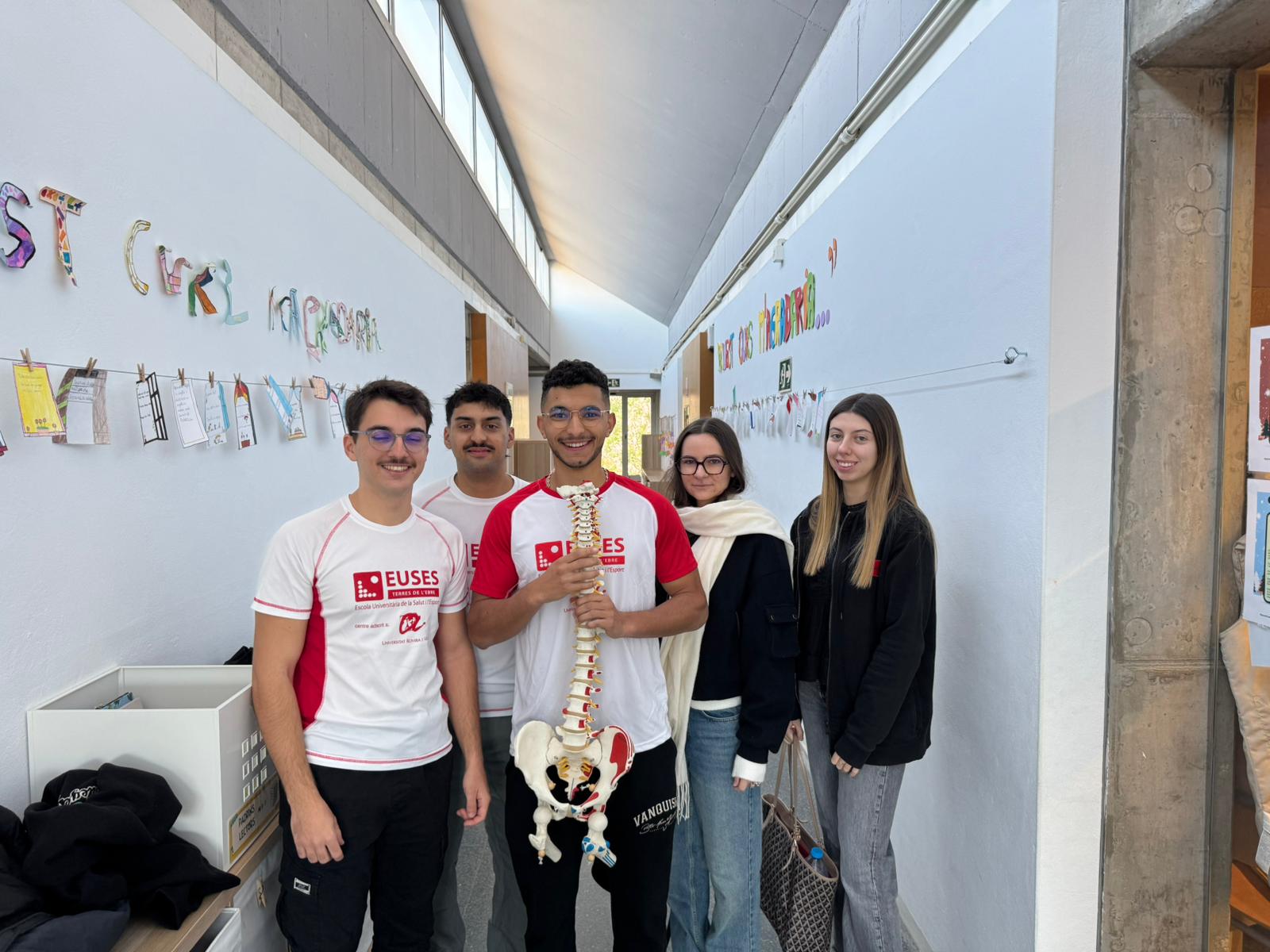 La fisioterapeuta de EUSES Alumni Aimee Ginovart y los estudiantes del Grado en Fisioterapia Mireia Moya, Mar Vallés, Mistirnesh Celma, Blai Serret...