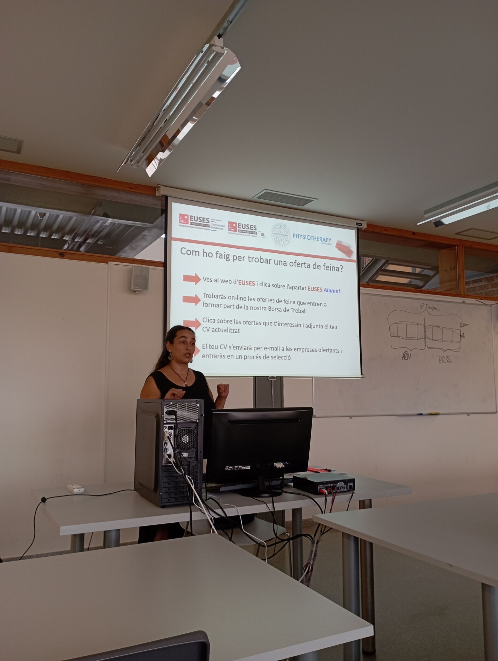 La responsable de EUSES Alumni en el Campus Terres de l’Ebre, Meri Cecília, ha presentado este miércoles la asociación de graduados y graduadas de la Escola Universitària de la Salut i l’Esport a los alumnos de 4º de CAFyD y de Fisioterapia. Meri Cecilia ha explicado que EUSES Alumni es un servicio totalmente gratuito para los graduados y graduadas de los tres Campus de EUSES y que es una asociación que tiene como objetivo acompañar a sus miembros en su paso de la vida académica a la laboral y más allá de ésta, poniendo a su alcance diferentes herramientas como son los servicios de orientación, la elaboración de currículums, la preparación de entrevistas laborales, etc. Otro de los productos estrella de Alumni es la Bolsa de Trabajo, que en los 10 años de vida de la asociación ha publicado más de 1.500 ofertas de trabajo.