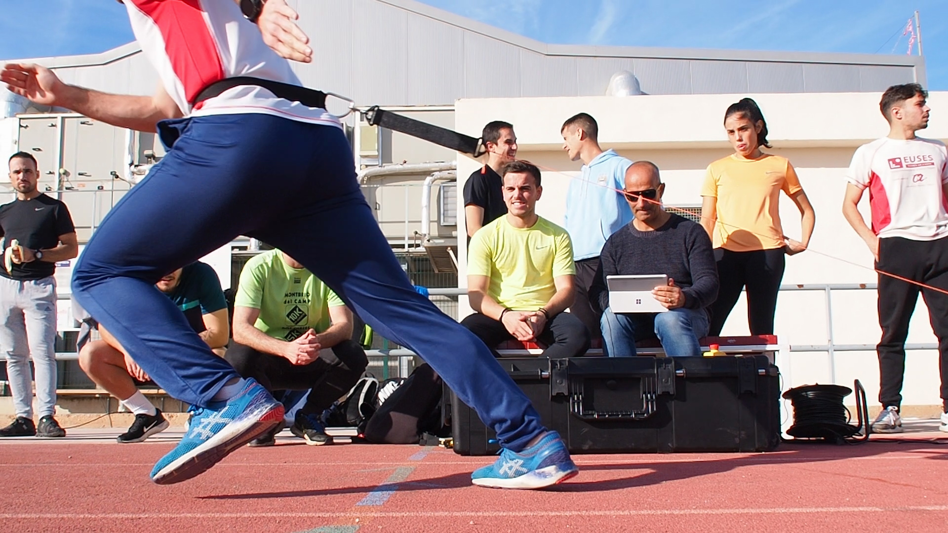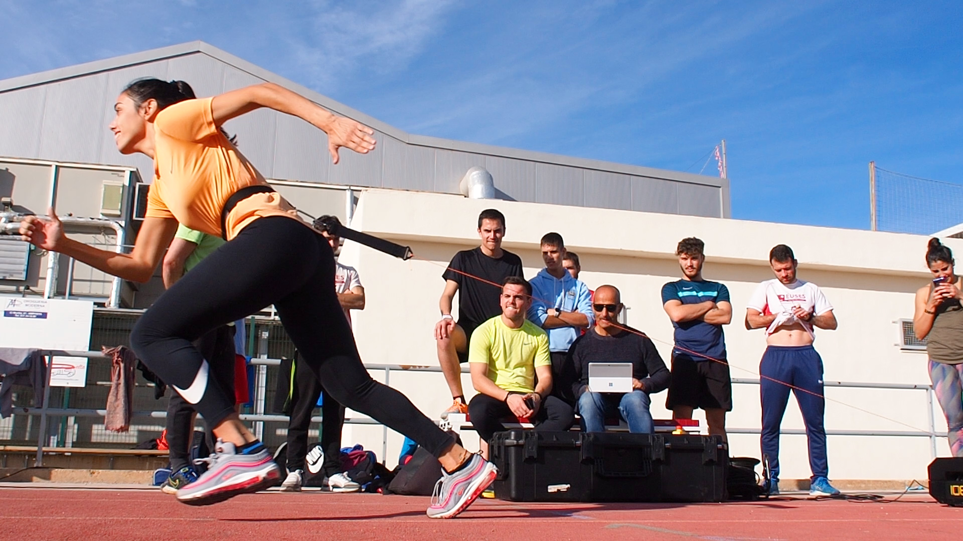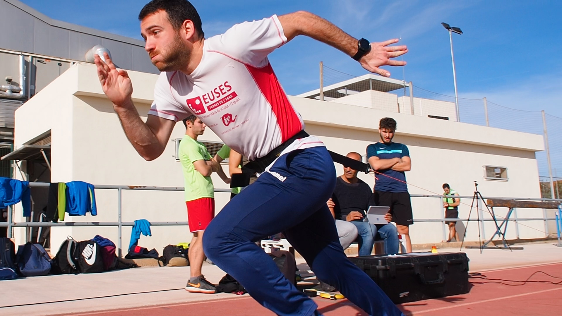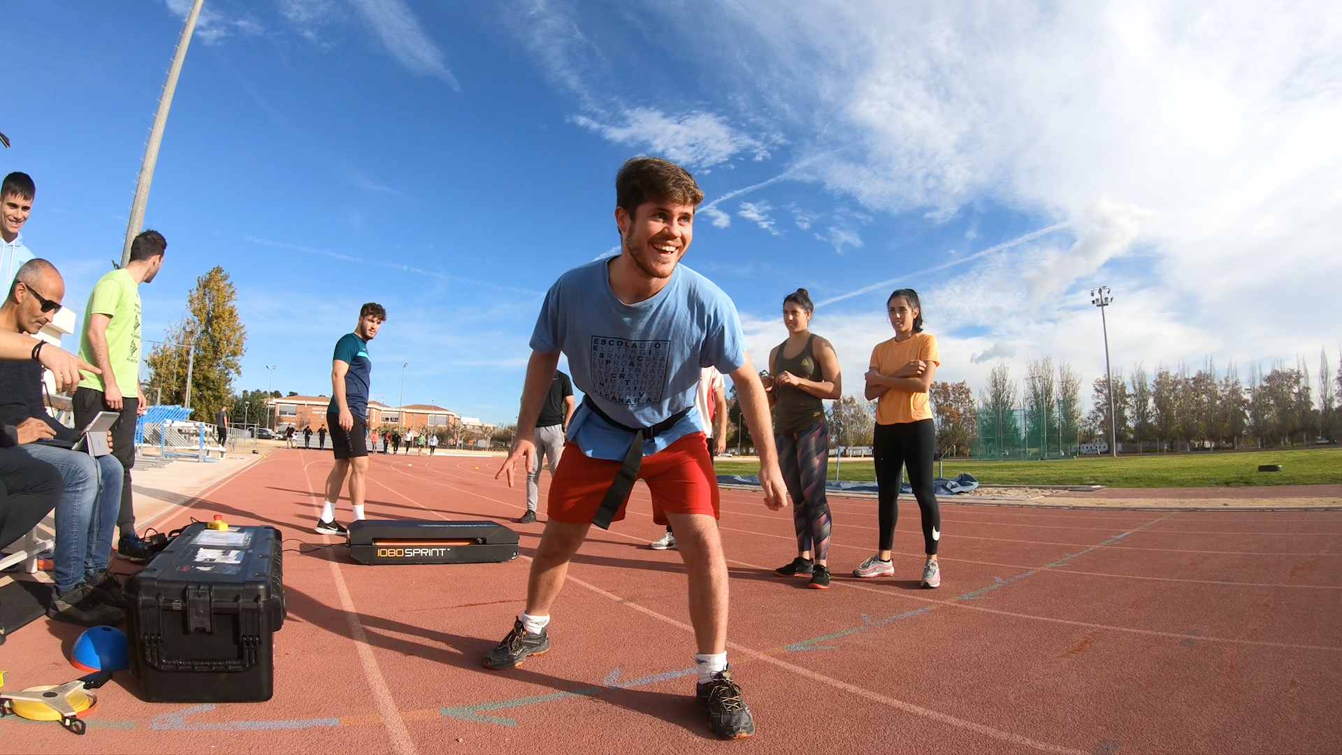 Los estudiantes de 4º curso del Grado en Ciencias de la Actividad Física y del Deporte pudieron disfrutar de una sesión práctica extraordinaria a cargo de los profesores de la asignatura de Teoría del Entrenamiento 3, Pau Cecília y Gerson Garrosa. Los alumnos pudieron experimentar con el único dispositivo que hay actualmente en el estado español, el 1080 Sprint, un mecanismo que permite realizar esprints en modo resistido o asistido dependiente de lo que se quiera entrenar. La máquina, de la marca sueca 1080 Motion, la tiene cedida el jefe de estudios de CAFE de EUSES Terers de l’Ebre, Pau Cecília, para hacer investigación para su doctorado de supervelocidad de desplazamiento en atletismo. En este enlace podéis ver el video resumen que ha hecho el alumno Albert Freissinier sobre esta clase extraordinaria.