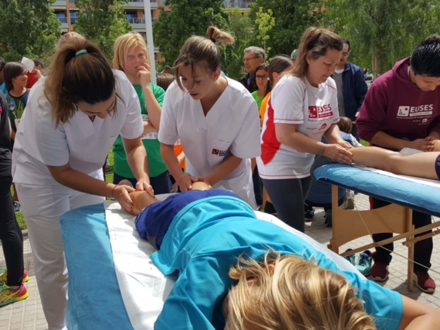 La fisioterapeuta de EUSES Alumni Aimee Ginovart y los estudiantes del Grado en Fisioterapia Mireia Moya, Mar Vallés, Mistirnesh Celma, Blai Serret...