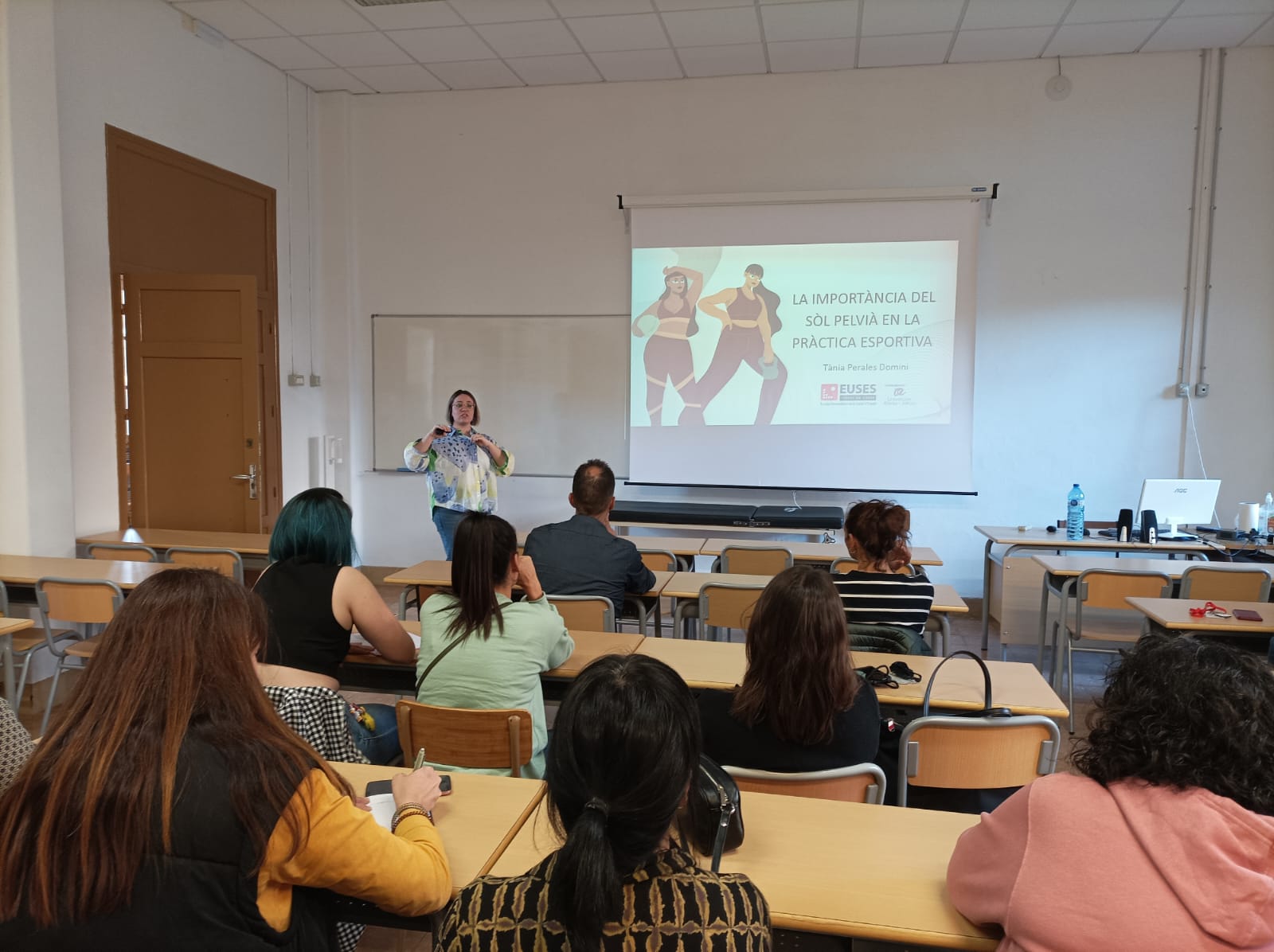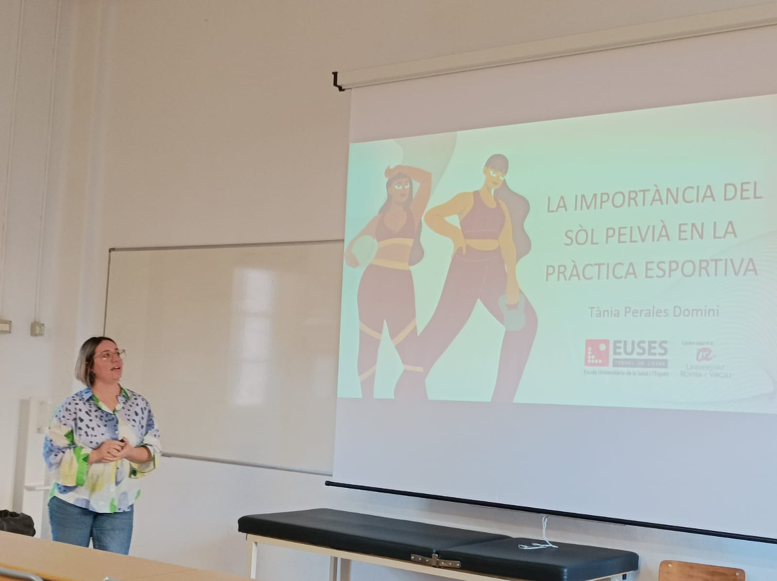 Este miércoles tuvo lugar en el edificio Seminario de Tortosa la 1ª cápsula formativa de primavera, a cargo de Tània Perales, fisioterapeuta y profesora del grado en Fisioterapia de EUSES Terres de l’Ebre-URV. La charla se articuló sobre la temática de suelo pélvico y ejercicio físico. Hubo una asistencia de una quincena de personas, la gran mayoría profesionales del ámbito de la actividad física y la salud y algunos alumnos del grado en Fisioterapia.