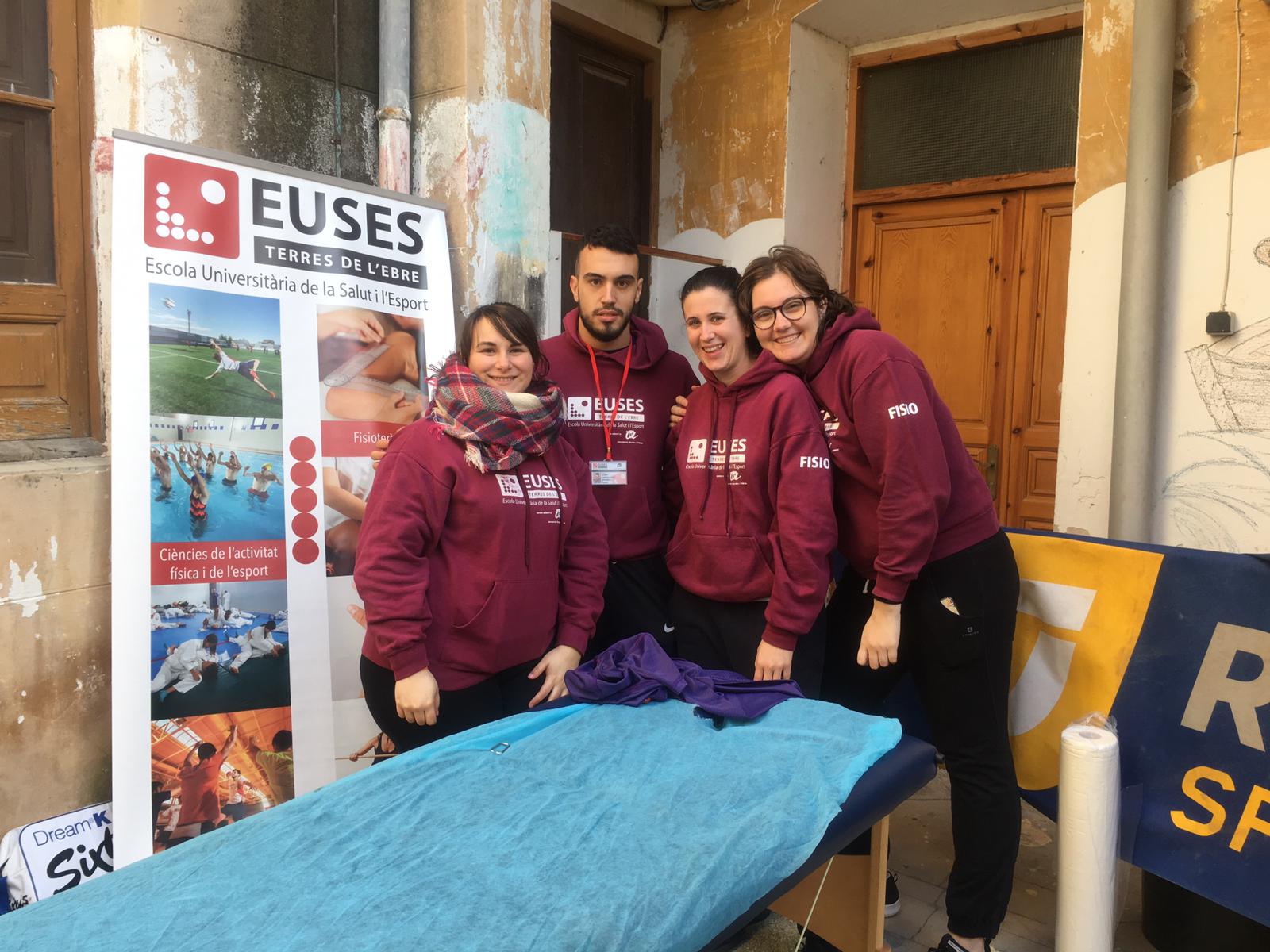 La fisioterapeuta de EUSES Alumni Aimee Ginovart y los estudiantes del Grado en Fisioterapia Mireia Moya, Mar Vallés, Mistirnesh Celma, Blai Serret...