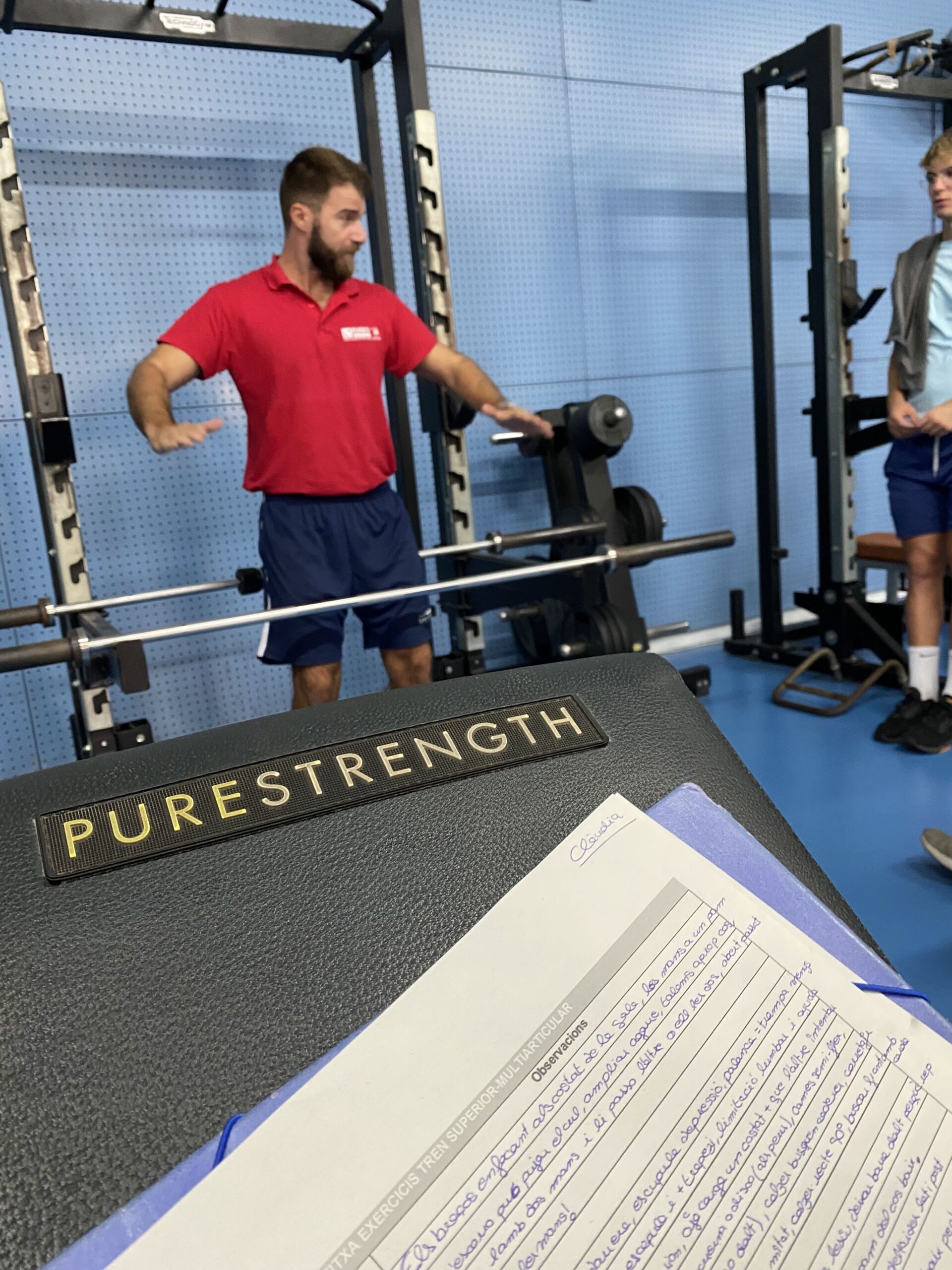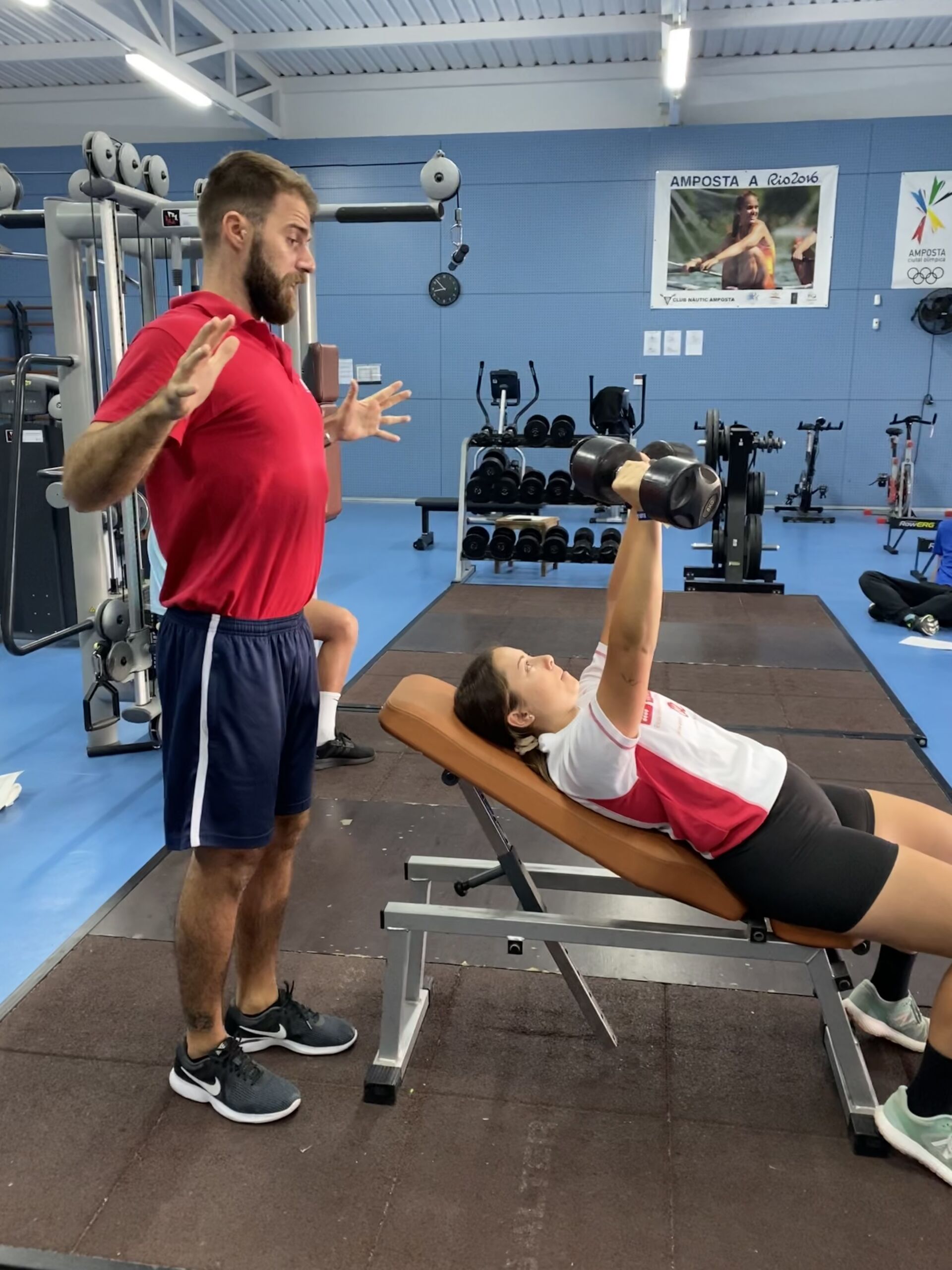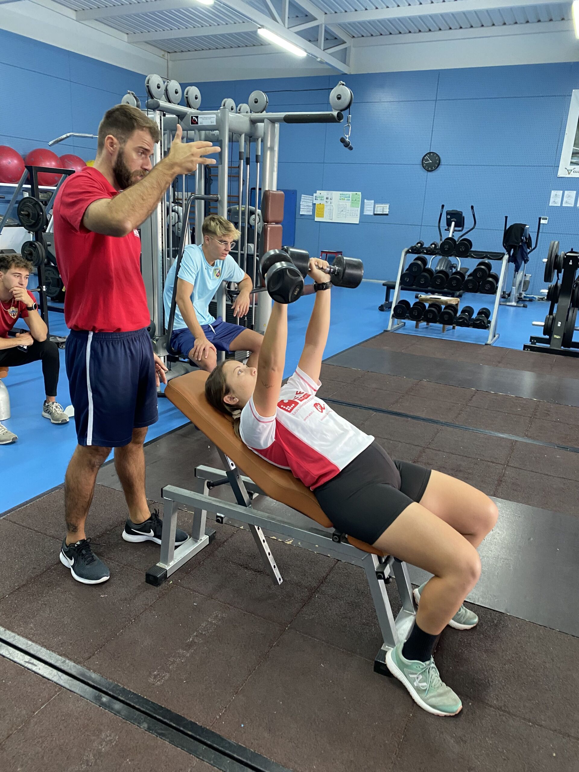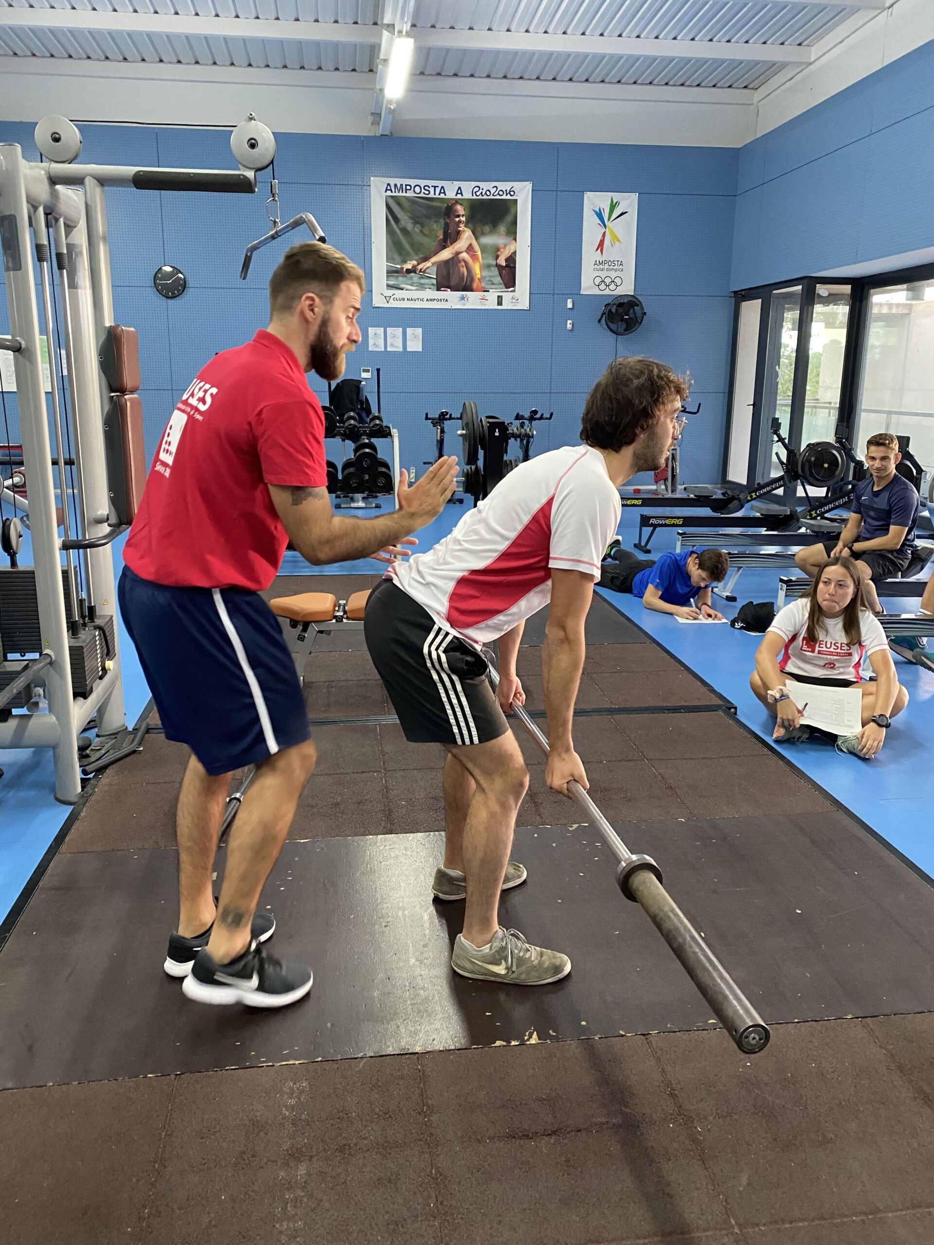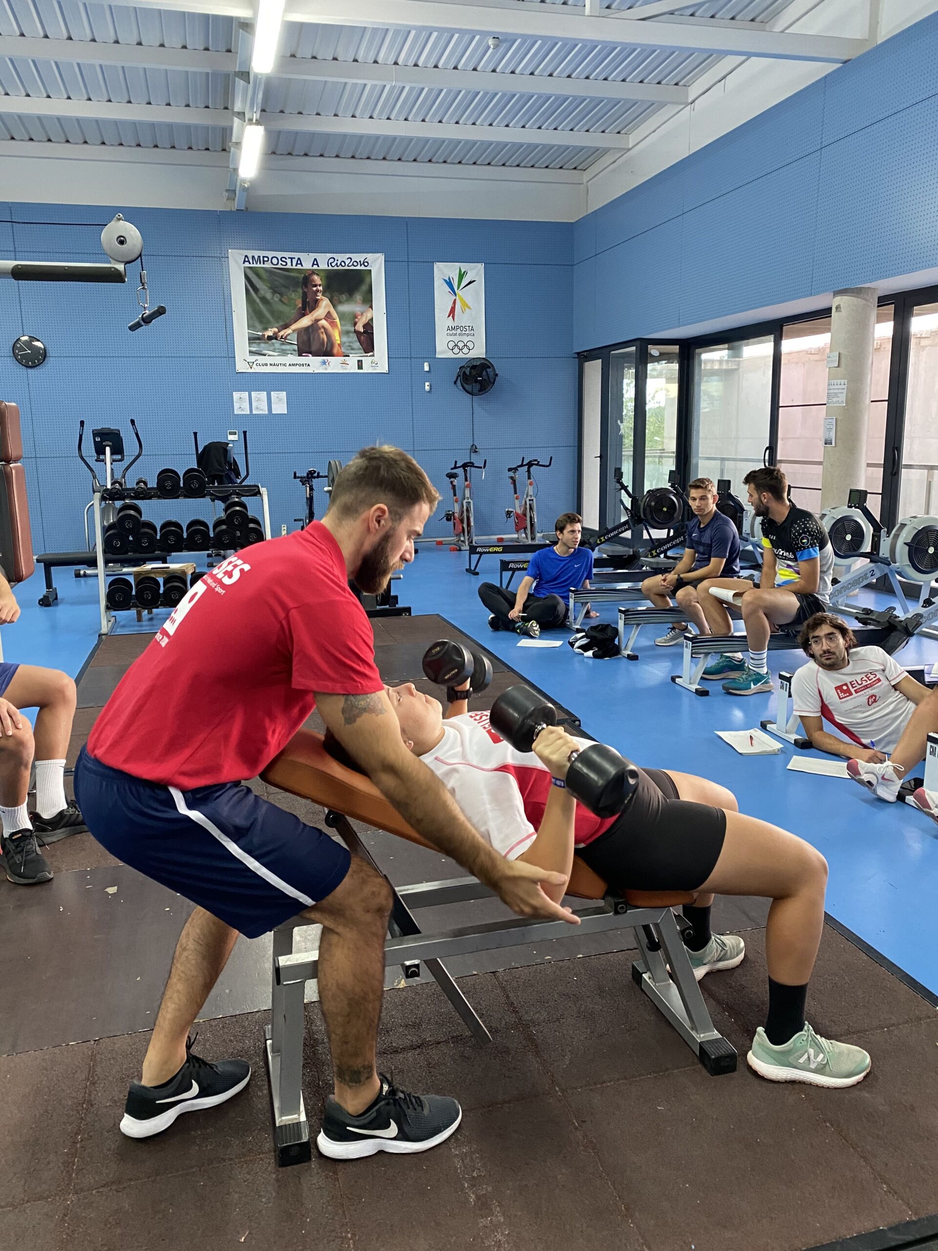 Estudiants de 4t de CAFE practiquen amb els pesos lliures en el gimnàs del Club Nàutic Amposta