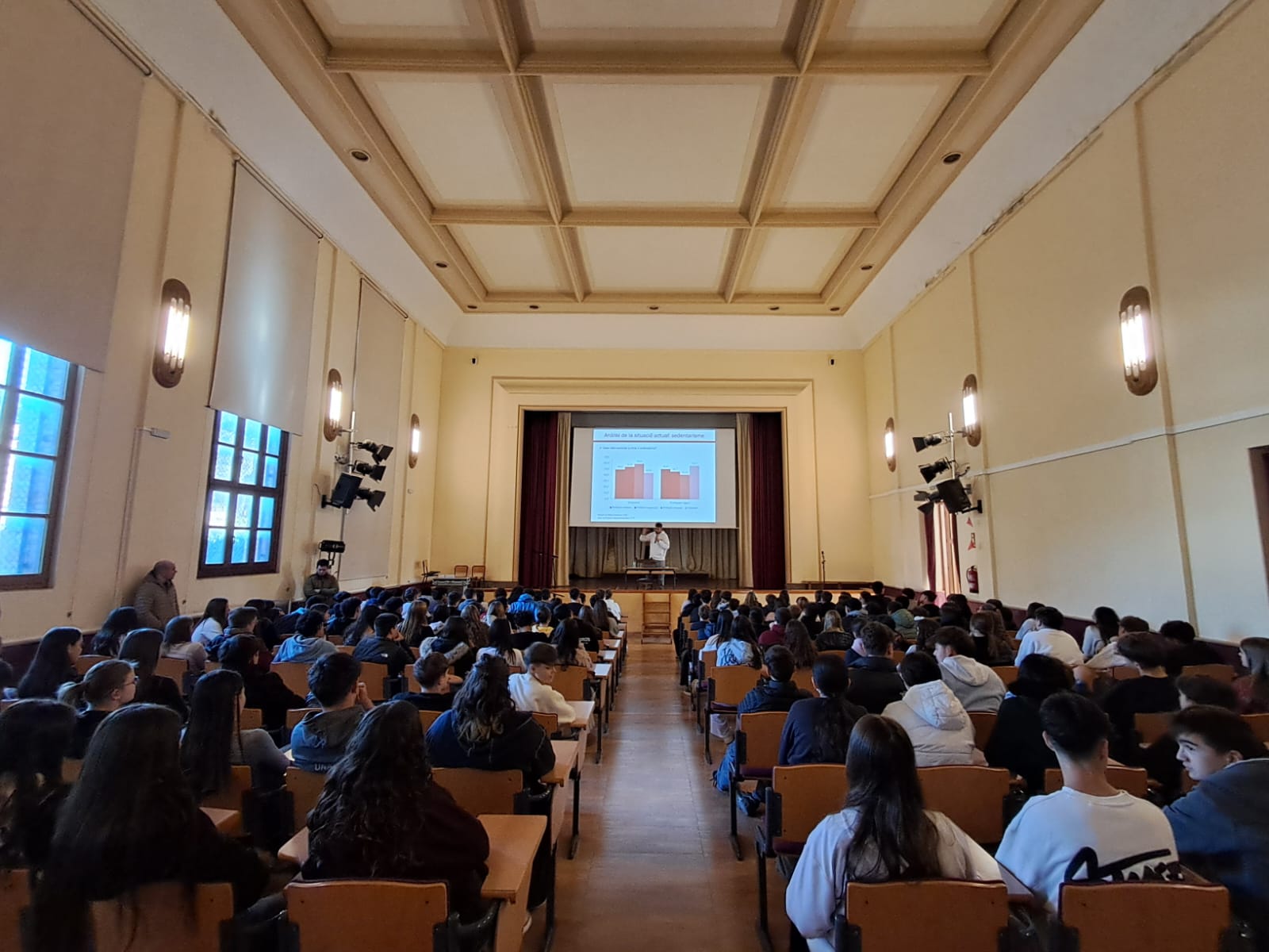 El passat dijous va tenir lloc a l’exterior de l’Edifici Seminari de Tortosa el Cros Escolar organitzat pel Col·legi Sagrada Família, emmarcat en els Jocs Escolars de Catalunya, i un any més EUSES-URV hi ha estat present amb una xerrada sobre hàbits saludables, impartida pel nostre graduat Adrià Sànchez, i dirigida als estudiants de 3r i 4t d’ESO. A la xerrada es va parlar d’aspectes com el sedentarisme i l’obesitat, i també sobre com l’activitat física pot ajudar en la millora de la salut d’infants i adolescents, alhora que aporta una sèrie de valors de gran importància com són la companyonia, el treball en equip o la cultura de l’esforç.