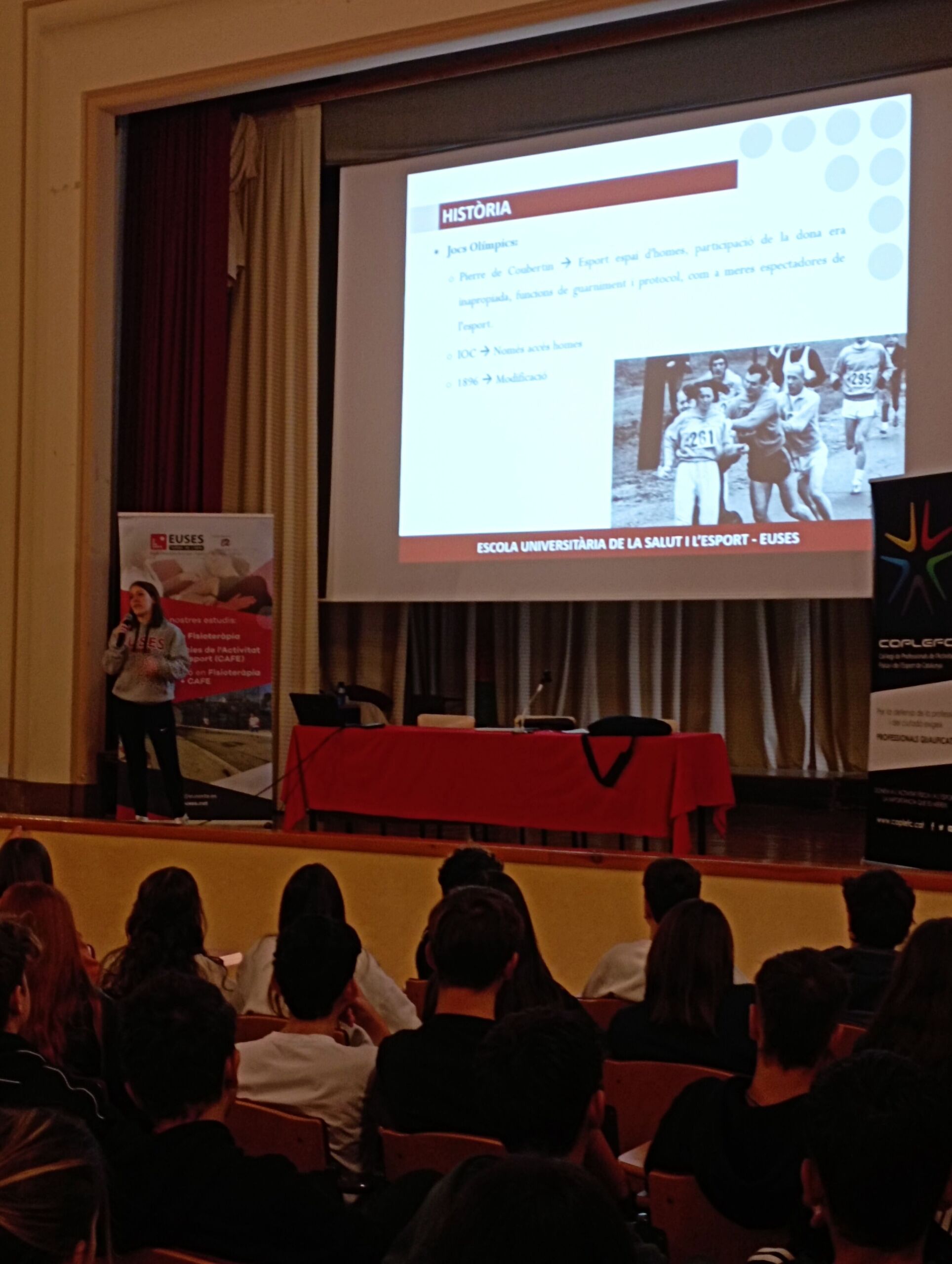 D’altra banda, i per als alumnes d’ESO, s’han impartit dos seminaris relacionats amb l’activitat física i l’esport. Davant més de 160 estudiants la graduada en CAFE Alba Encina ha fet una xerrada sobre Esport i Gènere, mentre que el graduat en CAFE i actual professor del Grau Dídac Carles ha centrat la seva conferencia en Exercici, Activitat Física i Salut. Ambdues ponències han estat molt ben acollides per l’audiència, que han estat molt participatius fent les seves preguntes i aportacions.