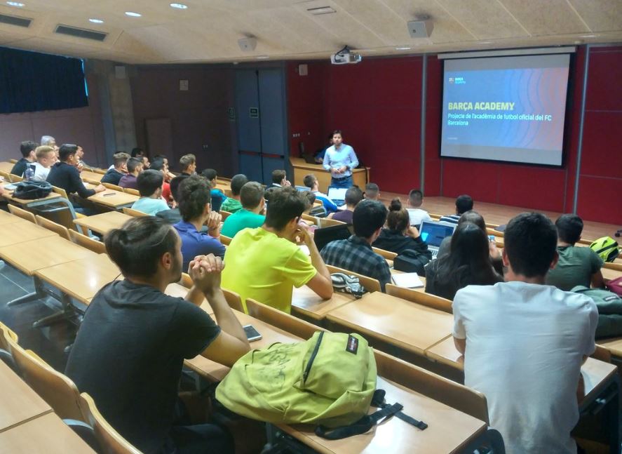 Isaac Guerrero i Marc Quintana presenten el projecte internacional Barça Academy als estudiants del Grau en CAFE d’EUSES al Campus de Salt