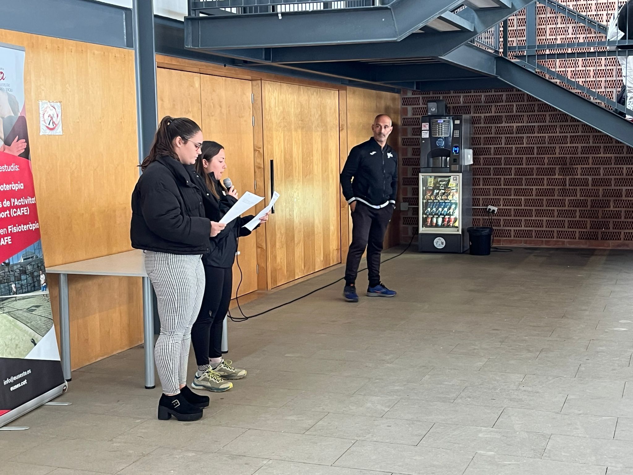 Aquest dilluns, els estudiants dels quatre cursos Grau en Ciències de l’Activitat Física i de l’Esport del Campus de Terres de l’Ebre s’han concentrat en el hall de l’edifici universitari d’Amposta per fer la lectura del Manifest del Consell Català de l’Esport de la Campanya contra la violència de gènere en l’esport. Les encarregades de fer la lectura han estat les alumnes de 4t Clàudia Isern Recasens i Anna Ferré Navarro coincidint amb que el passat divendres dia 25 va ser el Dia Internacional per a l’eliminació de la Violència envers les Dones. Des de l’EUSES s’ha formalitzat aquesta adhesió per refermar el compromís amb la llibertat i la garantia del dret de les dones a la seguretat, a la integritat física i psicològica, a la salut, a l’educació, a la participació social i política.