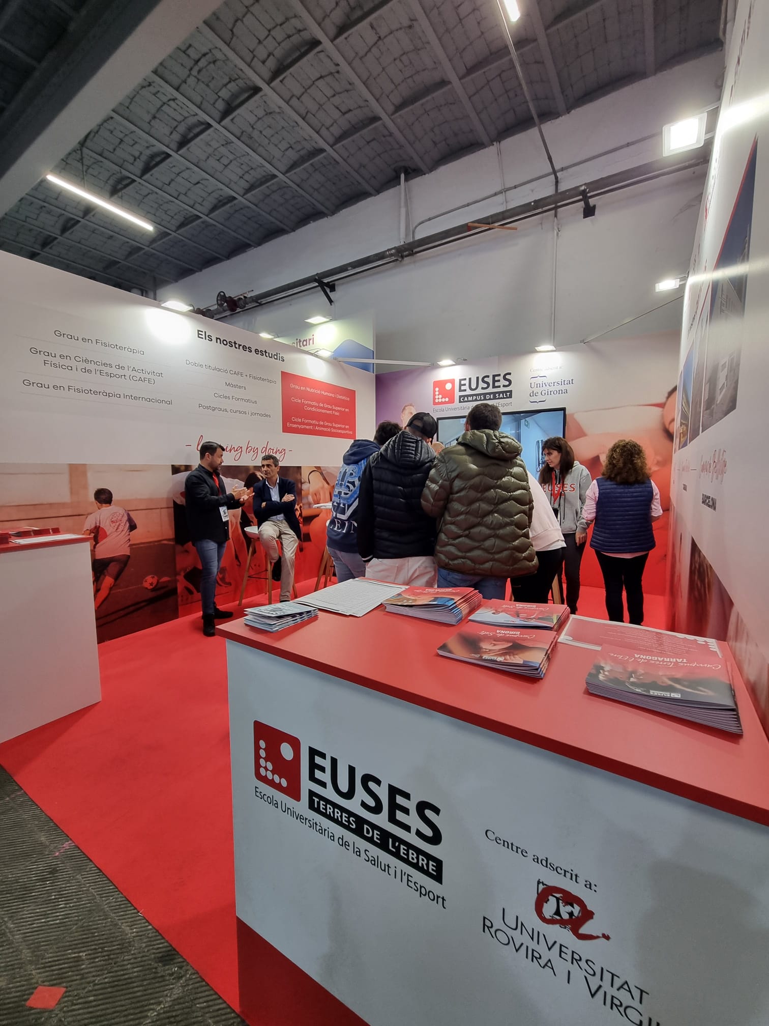 L’Escola Universitària de la Salut i l’Esport está present un any més en el Saló de l’Ensenyament, que ha obert aquest dimecres les portes en el recinte Montjuïc de la Fira de Barcelona i que esdevindrà fins al diumenge dia 17 de març el centre neuràlgic de l’orientació pel que fa a la formació acadèmica i sortides laborals. EUSES disposa en l’actualitat de tres Campus: Salt, Terres de l’Ebre (Amposta i Tortosa) i Bellvitge, i durant el saló ha desplegat un contingent de personal (directors, professors, membres de PAS…) per informar amb tot detall a aquells estudiants que es volen sumar a la familia a partir del curs acadèmic 2023/2024. El Centre Garbí, que comparteix instal·lacions amb EUSES-UdG al Campus de Salt, també ofereix en el mateix estand d’EUSES els seus cicles formatius (set en total) de l’àmbit de la medicina i l’esport.