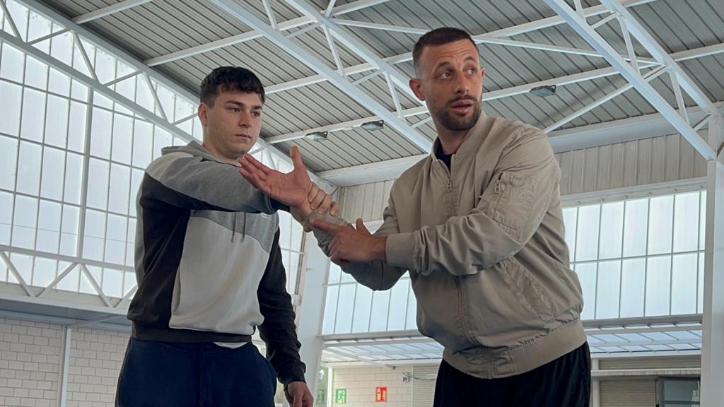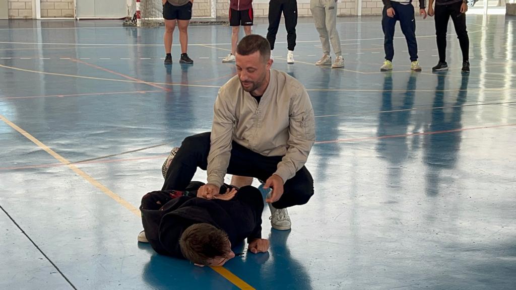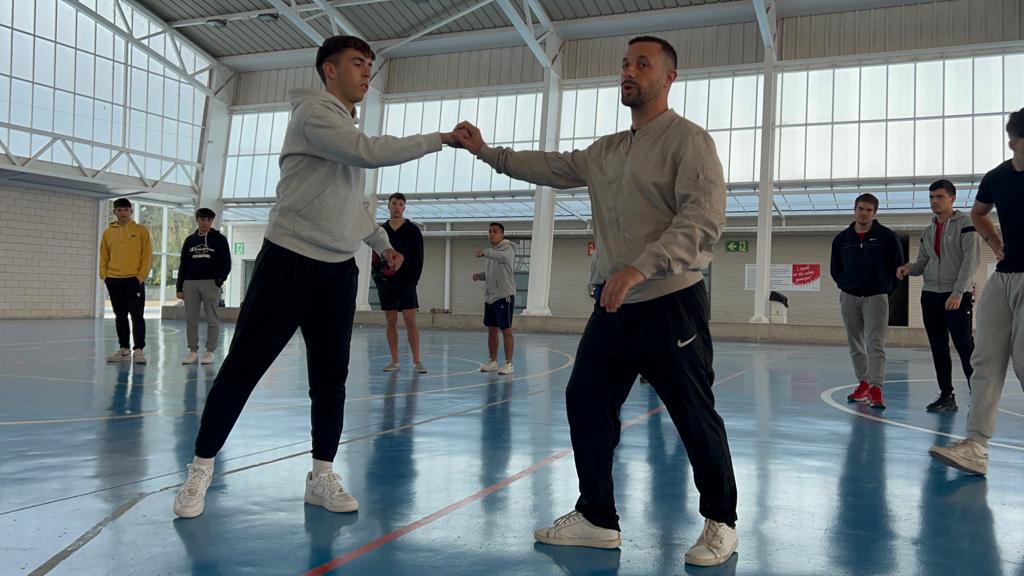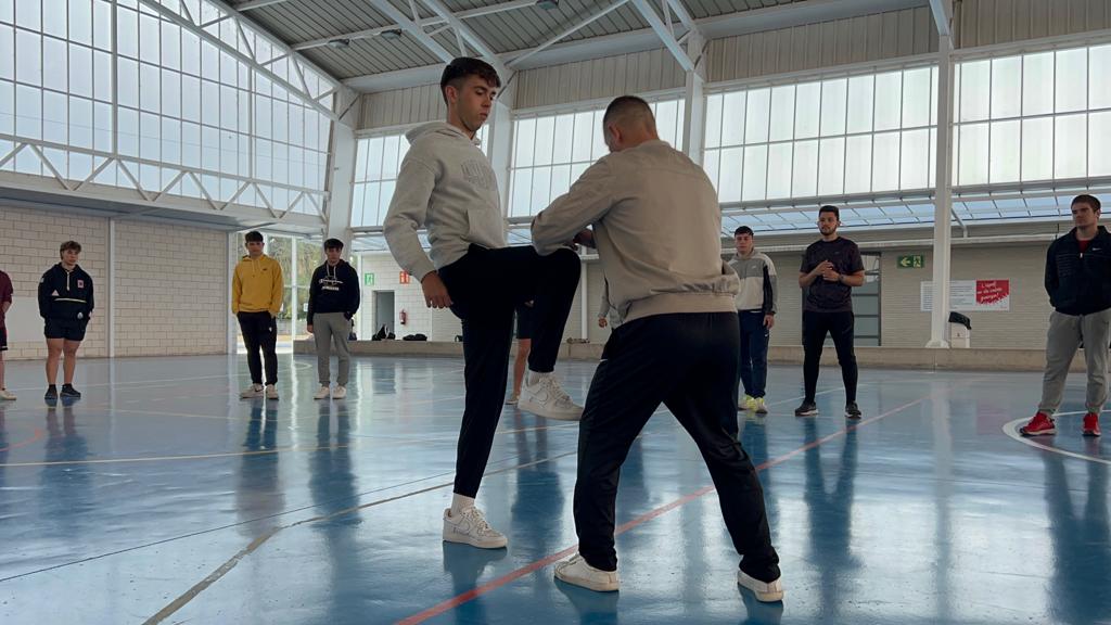 Aquest dilluns, en el marc de l’assignatura Expressió Corporal i Dansa del Grau en Ciències de l’Activitat Física i de l’Esport que imparteix la professora Sílvia García, s’ha organitzat una Master Class de Lluita Escència on l’alumnat de primer curs ha pogut experimentar colpejos i caigudes. La lliçó magistral l’ha impartit Kike Linares, graduat en Ciències de l’Activitat Física i l’Esport (CAFE) a l’INEFC de Lleida (Universitat de Lleida) i especialitzat en lluita escènica per Màster de Inextremis, amb més de 20 anys d’experiència en arts marcials, experiència en dansa (Breaking, ball en parella -salsa en línia, batxata, …-), acrobàcies, caigudes en alçada, maneig d’armes i en altres esports de risc com Kitesurf. Kike Linares va ser també precursor del grup de dansa Crazy Squad (grup de ball de l’INEFC Lleida dedicat a la organització de coreografías i esdeveniments com Exfimer); actor especialista en l’espectacle Ban! Bang! West! de Port Aventura i, des de fa dos anys, actor especialista en diferents pel·lícules, series i publicitat.