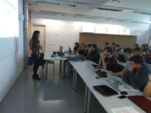 Míriam Rocher, representant de l’Observatori Català de l’Esport, realitza una ponència als alumnes de 1r curs de CAFE d’EUSES-URV