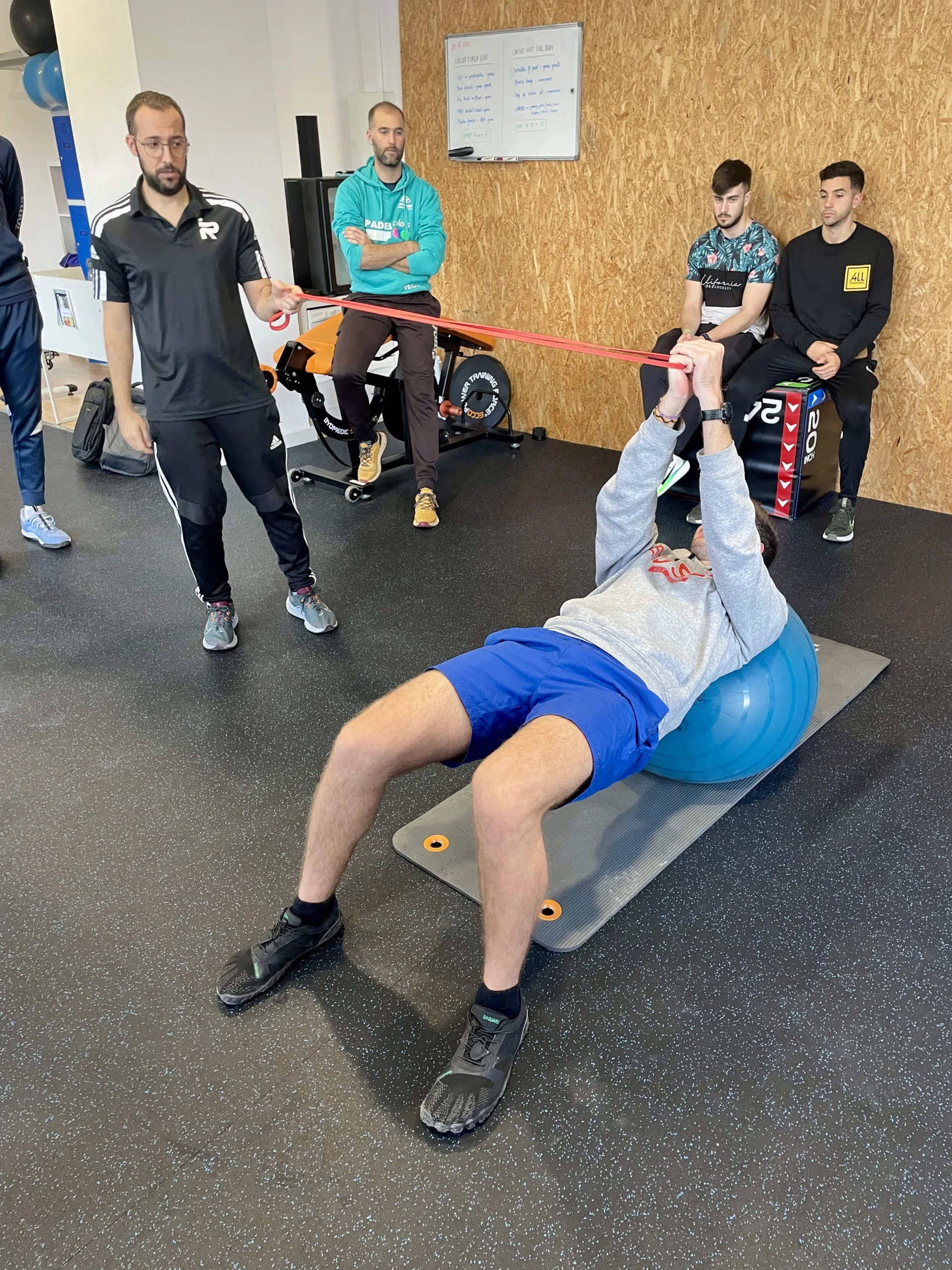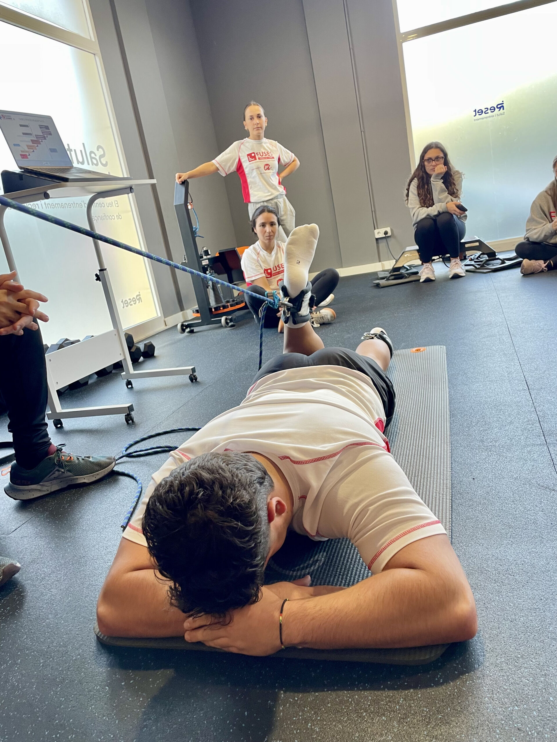 Els alumnes de 4t de Fisioteràpia han participat en la sessió centrant-se més en les primeres fases de la readaptació (valoració, rehabilitació inicial i treball de mobilitat), mentre que els de CAFE han treballat les fases més avançades (força, recuperació funcional o prevenció de recaigudes). Tots dos grups han pogut observar i aplicar estratègies específiques, tot integrant els coneixements adquirits en un marc pràctic.