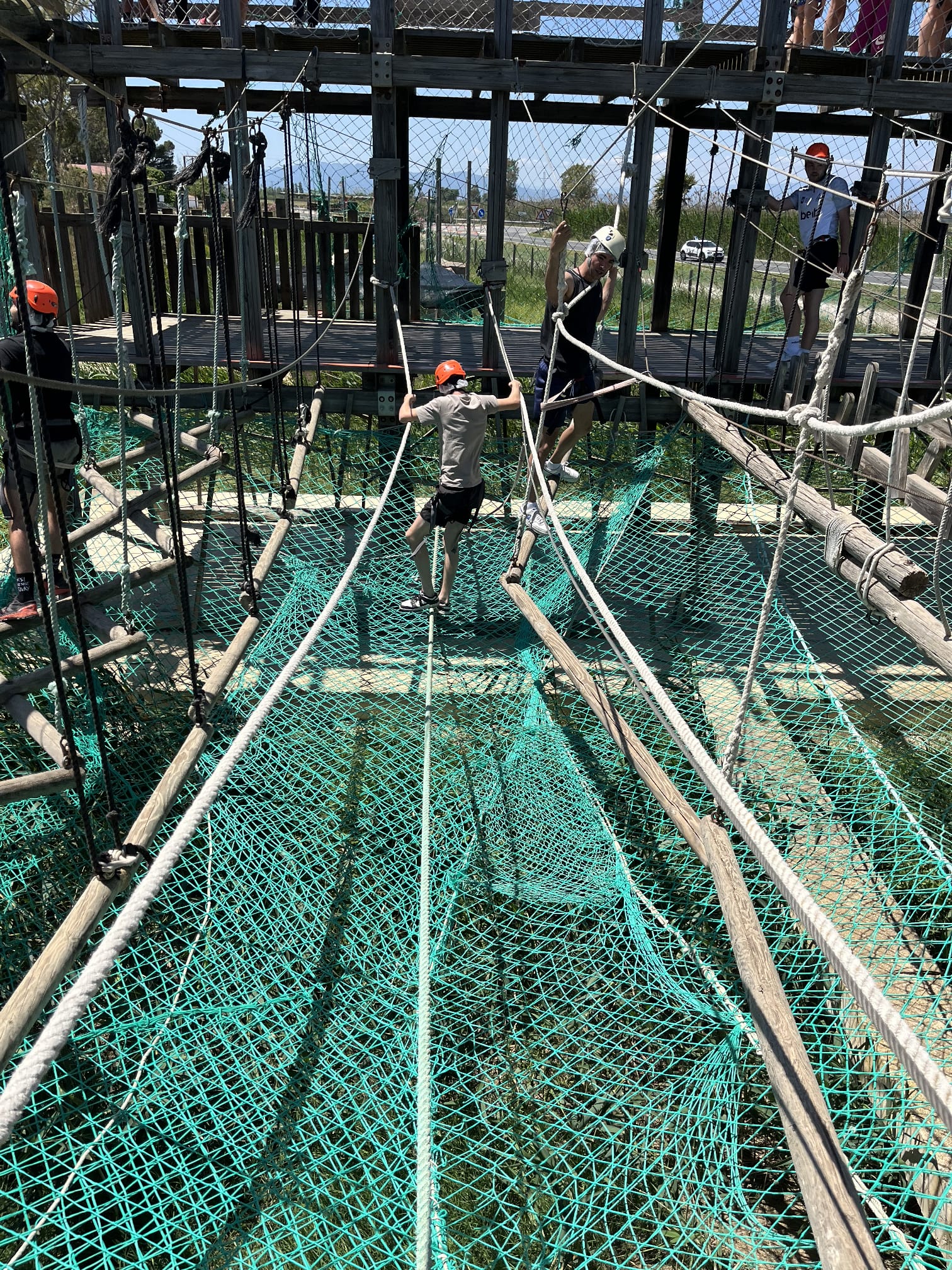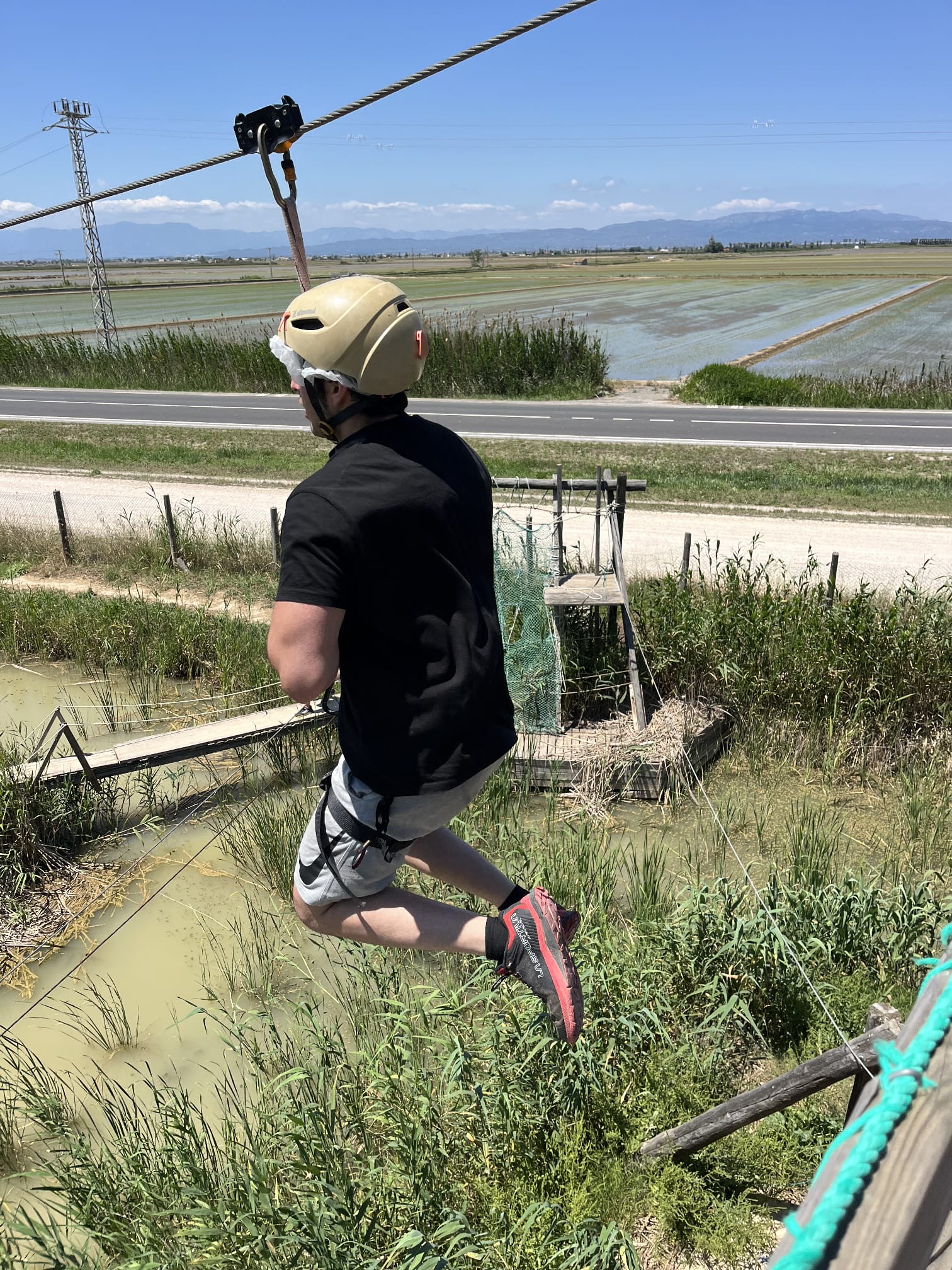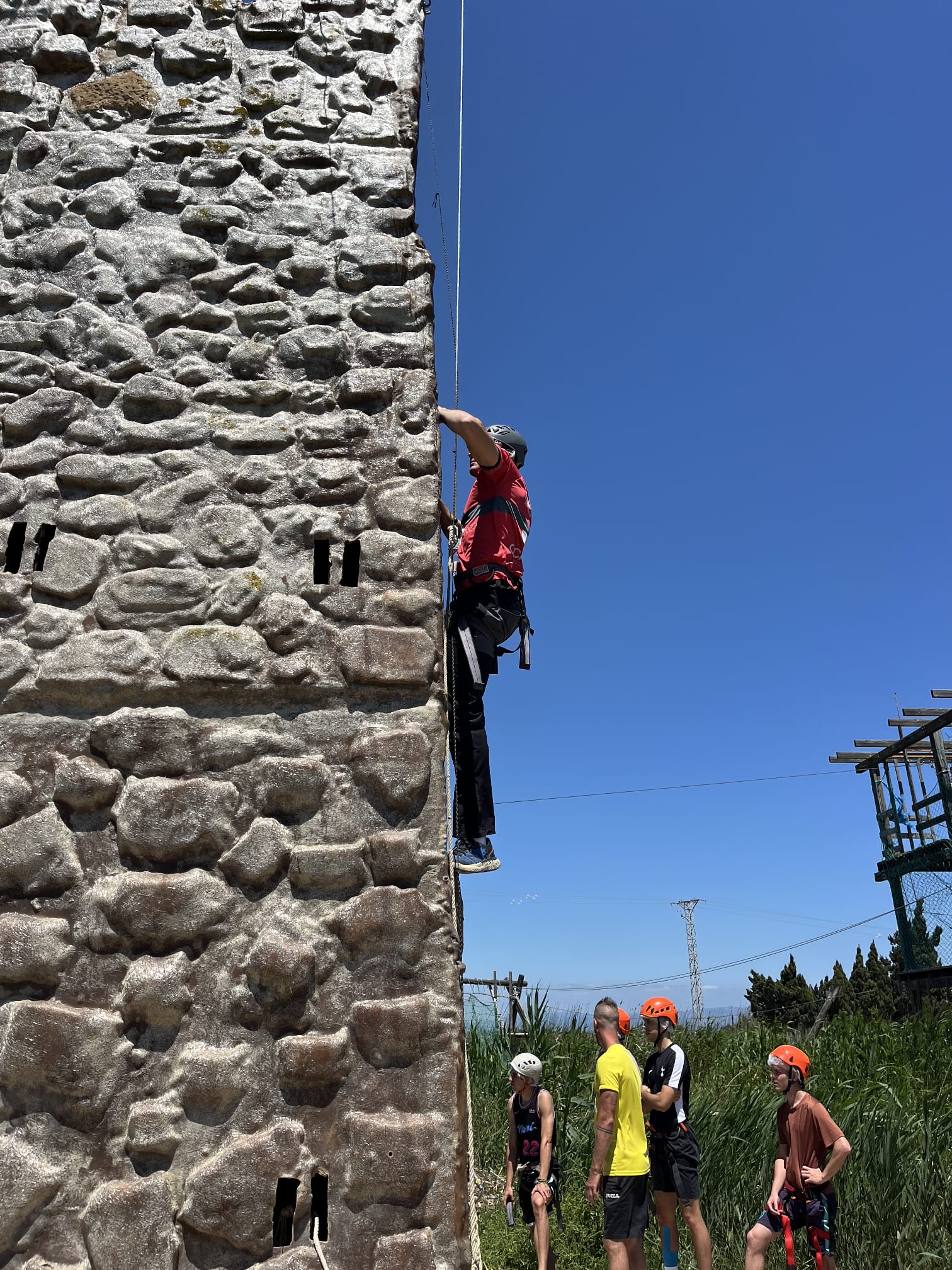 Els estudiants de 3r curs de CAFE de l’assignatura “Activitat Física en la Natura” que imparteix el professor Josep Carles Peris han realitzat la darrera activitat aquest dimarts a les instal·lacions del Parc Deltaventur, al cor del Delta de l’Ebre. La sessió ha estat plantejada com una activitat final integradora, en què l’alumnat ha pogut participar en un ampli ventall de propostes de caràcter multiaventura: escalada, tir amb arc, tirolines, ponts tibetans i circuits aeris, entre d’altres. Més enllà de la dimensió vivencial, la jornada ha permès reforçar els aprenentatges adquirits al llarg de l’assignatura, relacionats amb la seguretat, la dinamització de grups, i la gestió d’activitats físiques en entorns naturals.