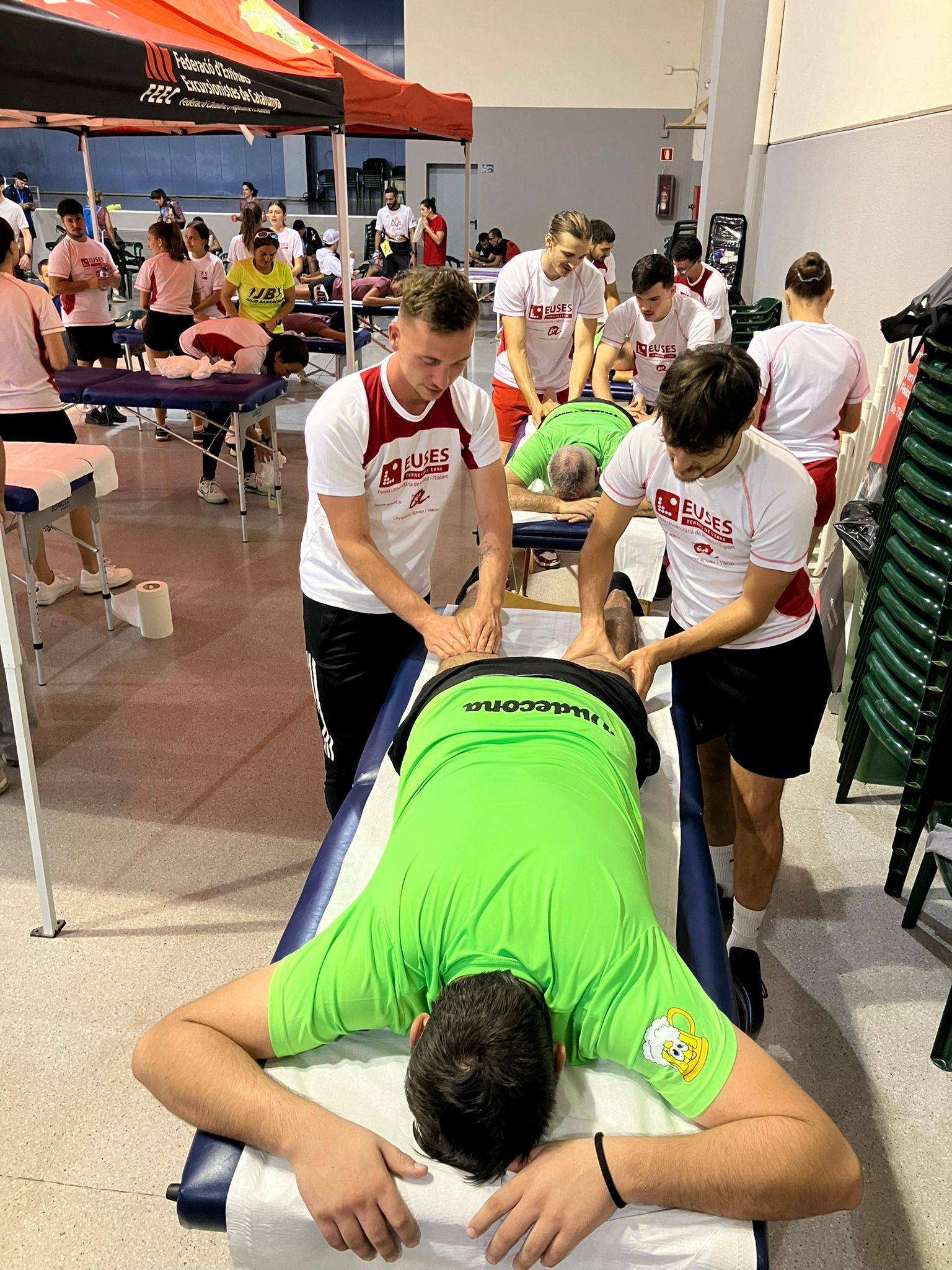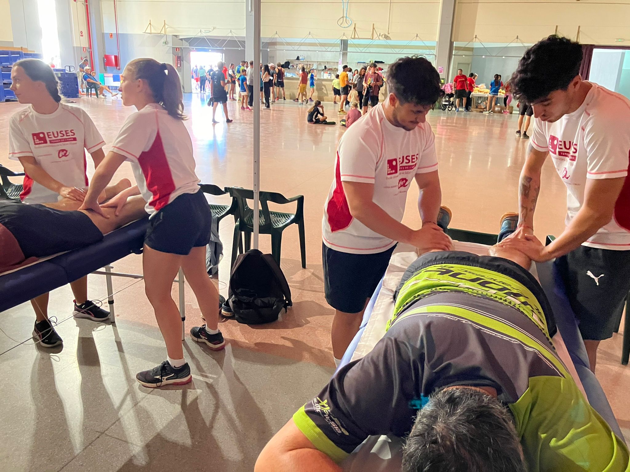 Aquest diumenge, EUSES Terres de l’Ebre ha col·laborat amb la XVIII Pujada al Montsià, a Alcanar amb un voluntariat de fisioteràpia. A la zona d’arribada i en un punt de fisioteràpia convenientment habilitat, la tutora i associada a EUSES Alumni Sara Sánchez ha assessorat i guiat els alumnes de 4t curs sobre les tècniques de recuperació musculars a aplicar als esportistes, que han estat bàsicament massatges i estiraments. Els estudiants que han participat en aquest voluntariat han estat: Achille Jubin-Huerne, Yanis Proux, Solenne Callejon, Jorge Zapata, Nicolas Roussie, Baptiste Marliere, Joan Villanueva, Hugo Banquet, Sacha Grimaud, Florian Ponce, Adela Romero, Candice Teyssou, Milia Coiffard, Ambre Grudzien, Romain Boinon, Juliette Marsaudon, Noemí González I Maxime Blaise.